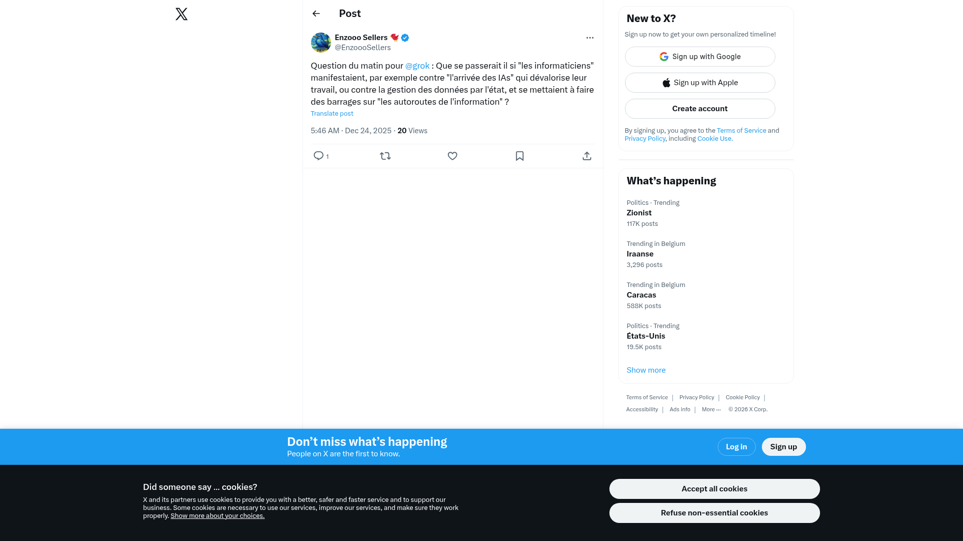 Linuxine (@linuxine@social.linuxine.net)Jour de neige en région parisienne ! C'est l'occasion de rappeler que seuls les gens qui émettent des particules fines et un max de CO2 ont le droit de voir leur impots utilisés pour déneiger les v...PNG