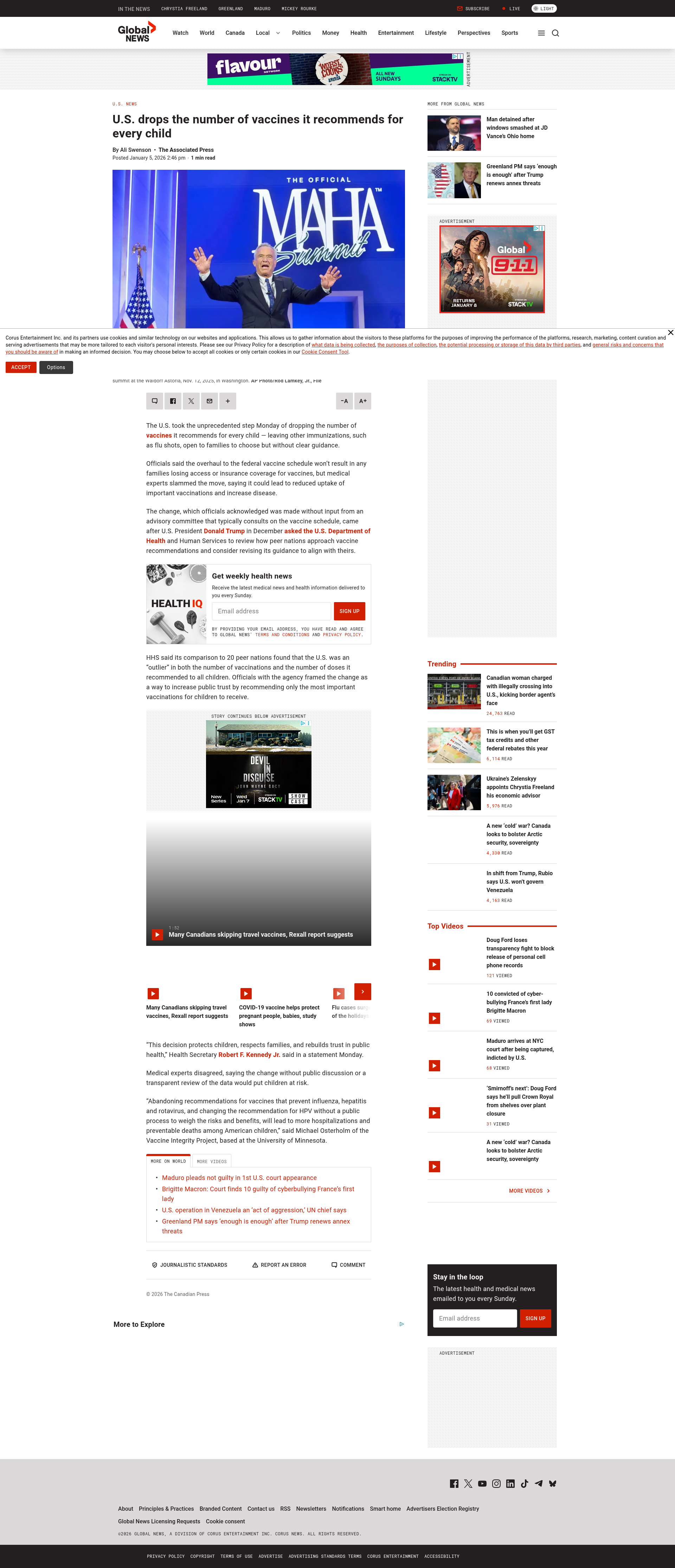 U.S. drops the number of vaccines it recommends for every child - National | Globalnews.ca'This decision protects children, respects families, and rebuilds trust in public health,' Health Secretary Robert F. Kennedy Jr. said in a statement.PNGPDF