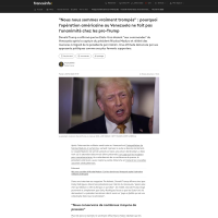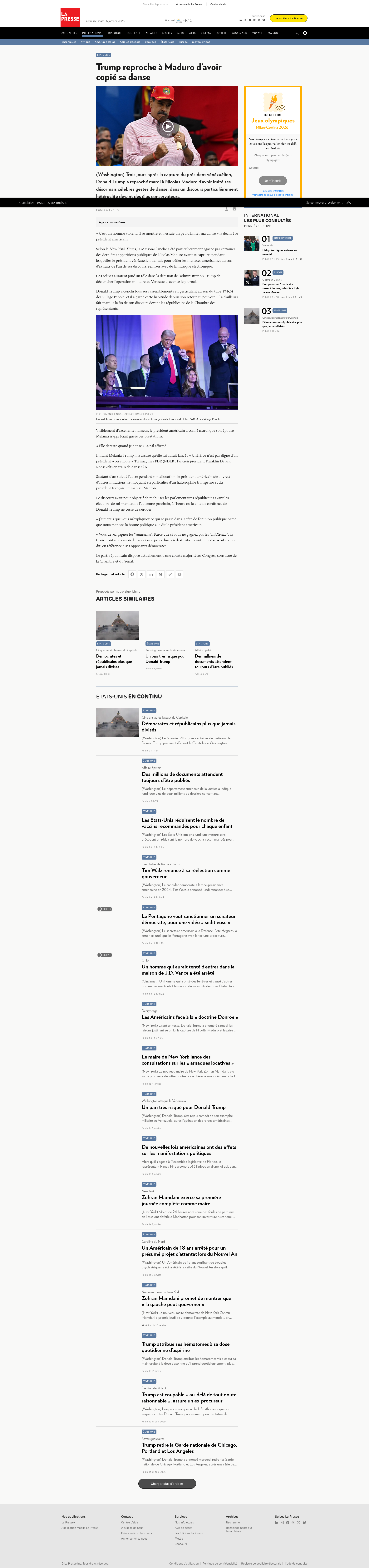 Trump reproche à Maduro d’avoir copié sa danse Trois jours après la capture du président vénézuélien, Donald Trump a reproché mardi à Nicolas Maduro d’avoir imité ses désormais célèbres gestes de danse, dans un discours particulièrement hétéroclite devant des élus conservateurs. PNGPDF