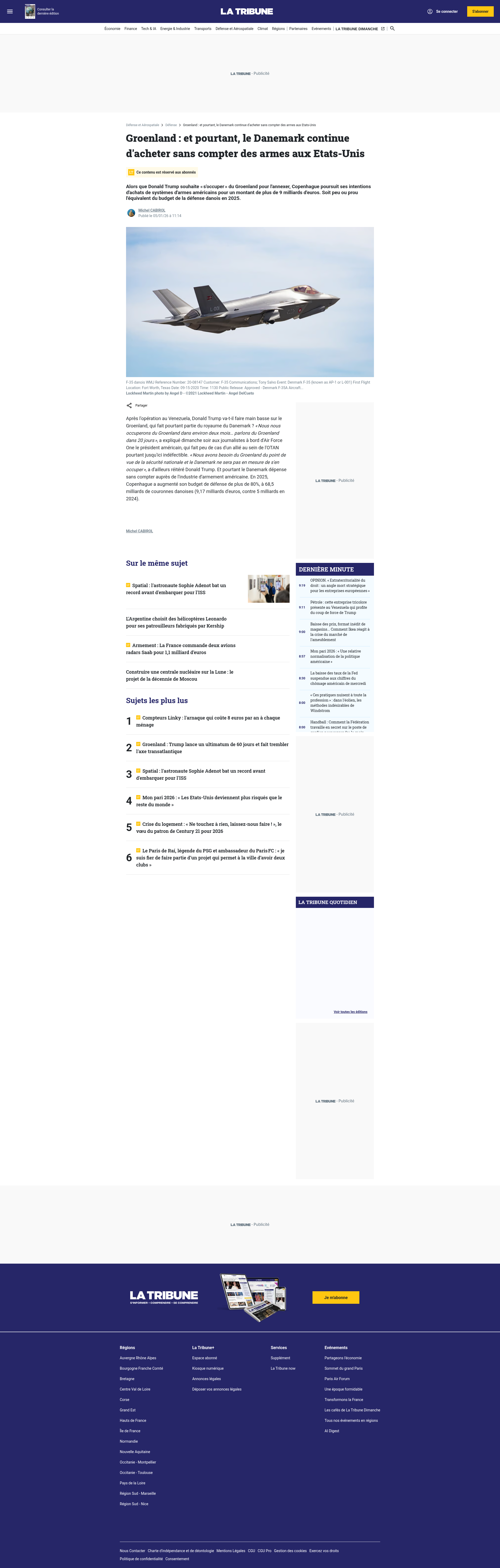 Groenland : et pourtant, le Danemark continue d'acheter sans compter des armes aux Etats-UnisAlors que Donald Trump souhaite « s'occuper » du Groenland pour l'annexer, Copenhague poursuit ses intentions d'achats de systèmes d'armes américains pour un montant de plus de 9 milliards d'euros. Soit peu ou prou l'équivalent du budget de la défense danois en 2025.PNGPDF