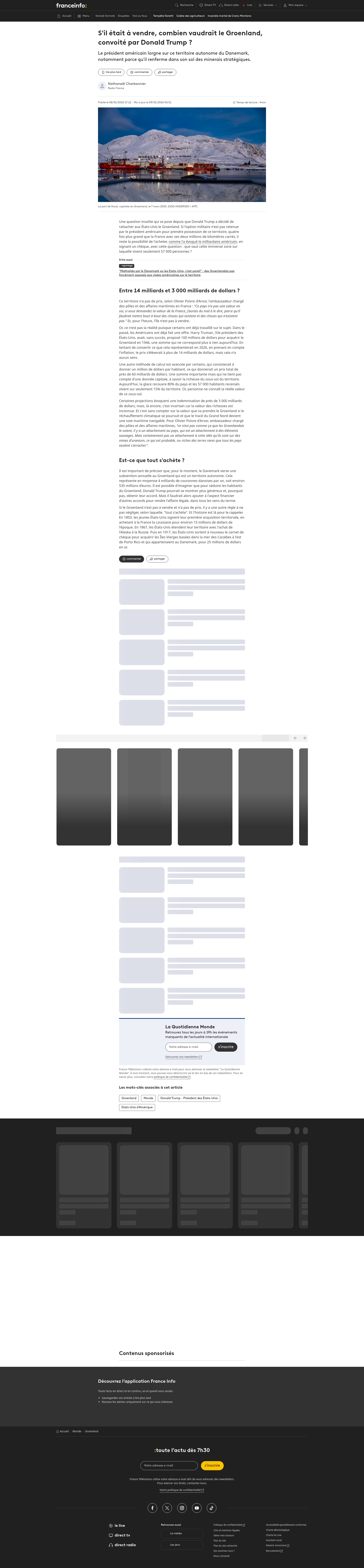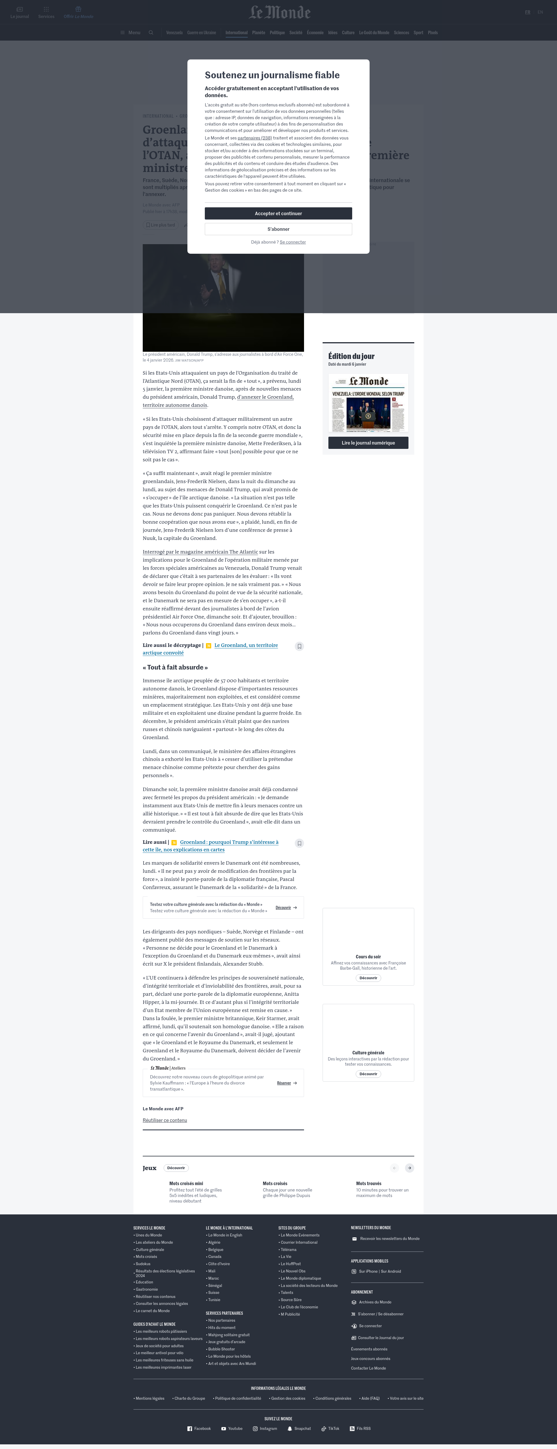 Groenland : « Si les Etats-Unis choisissent d’attaquer militairement un autre pays de l’OTAN, alors tout s’arrête », prévient la première ministre danoiseFrance, Suède, Norvège, Finlande… Les messages de soutien au Danemark de la communauté internationale se sont multipliés après les nouvelles menaces du président américain de « s’occuper » de l’île arctique pour l’annexer.PNGPDF