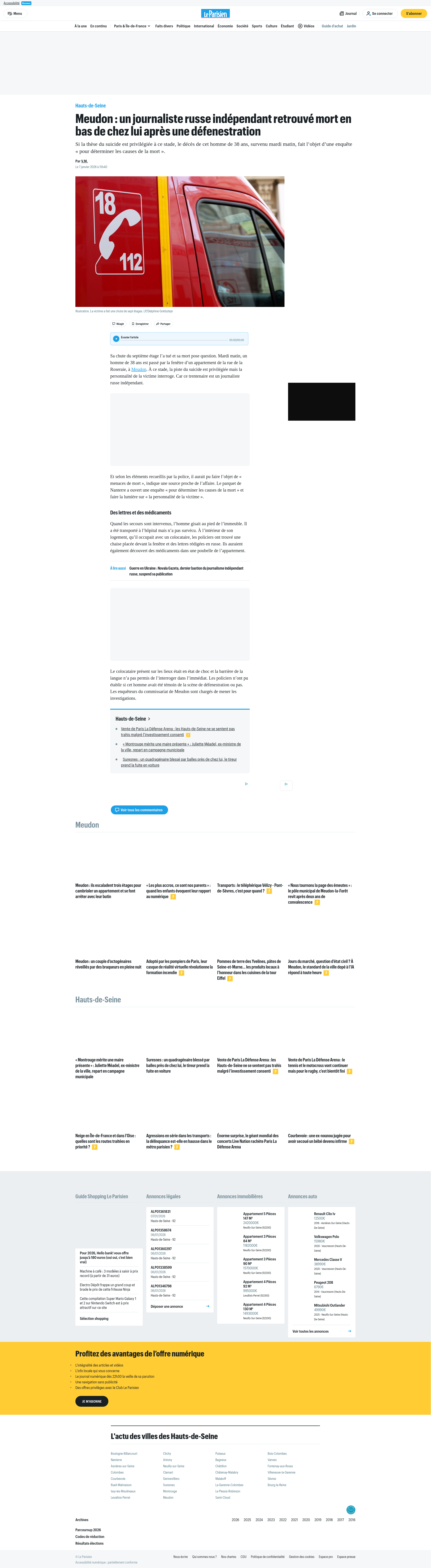 Meudon : un journaliste russe indépendant retrouvé mort en bas de chez lui après une défenestrationSi la thèse du suicide est privilégiée à ce stade, le décès de cet homme de 38 ans, survenu mardi matin, fait l’objet d’une enquête « pour dPNGPDF