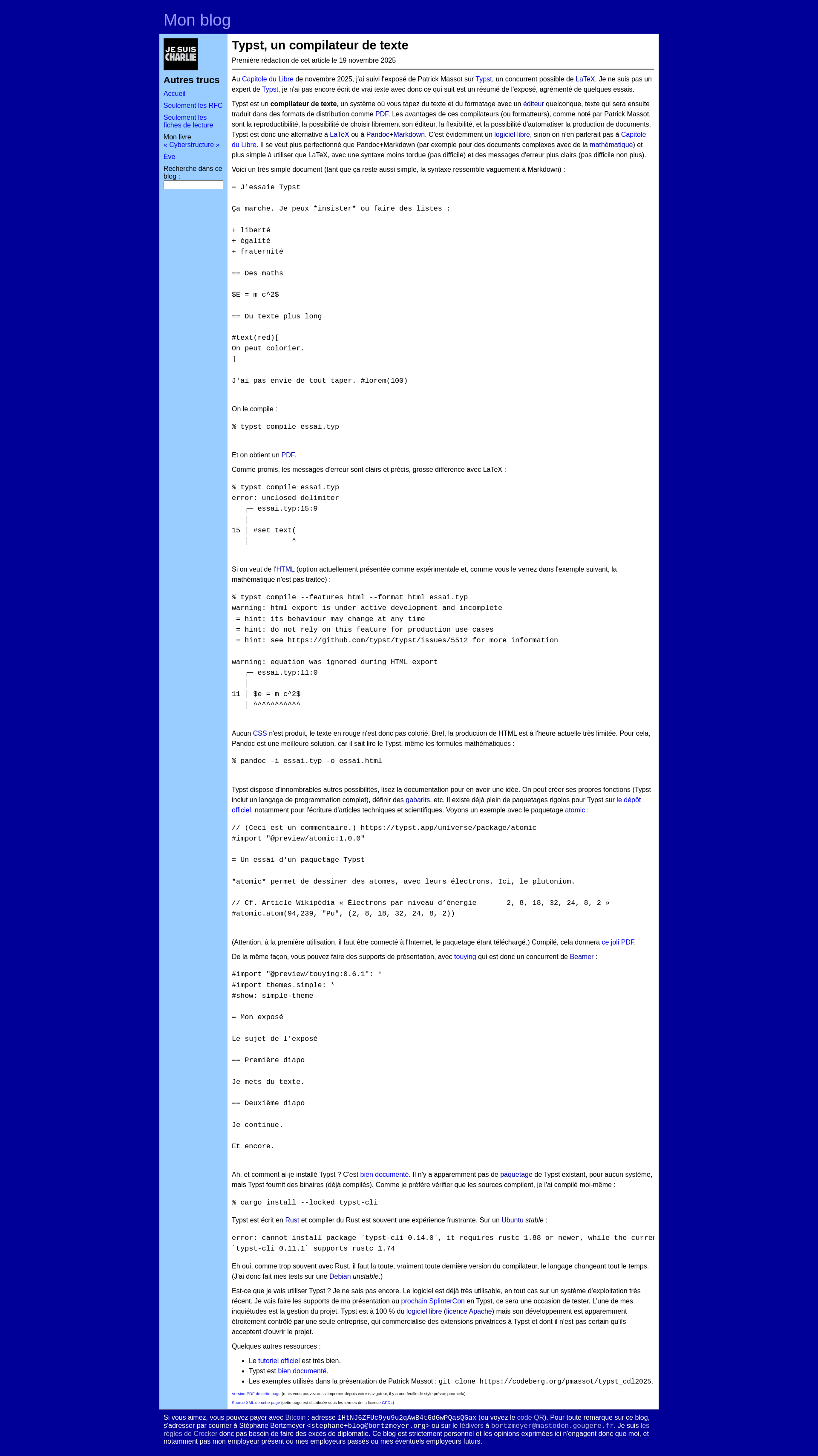Blog Stéphane Bortzmeyer: Typst, un compilateur de textePNGPDF