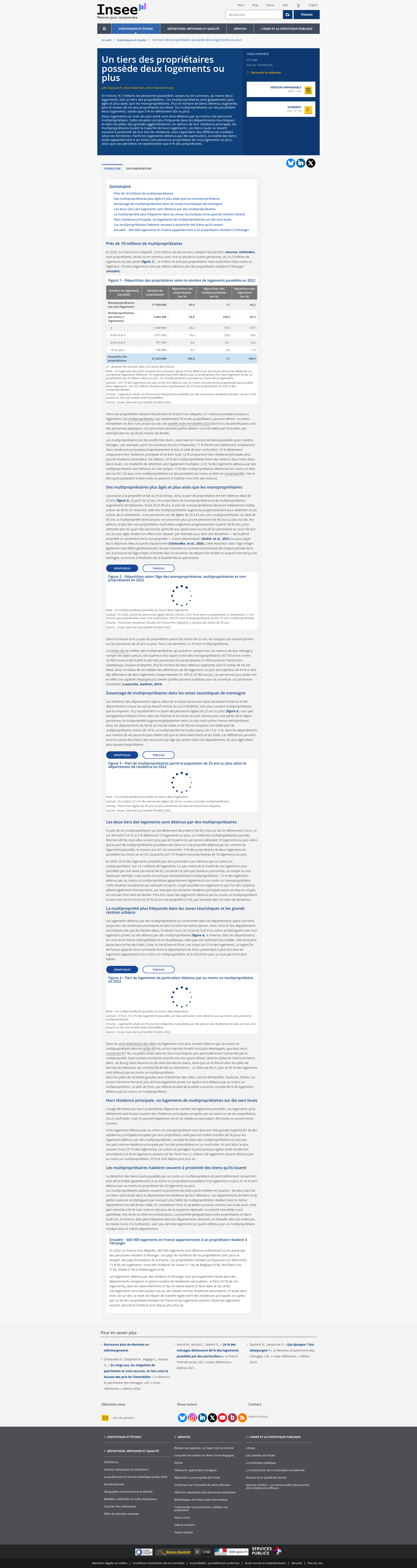 Un tiers des propriétaires possède deux logements ou plus - Insee Première - 2046En France, 9,7 millions de personnes possèdent, seules ou en commun, au moins deux logements, soit un tiers des propriétaires. Ces multipropriétaires sont globalement plus âgés et plus aisésPNGPDF