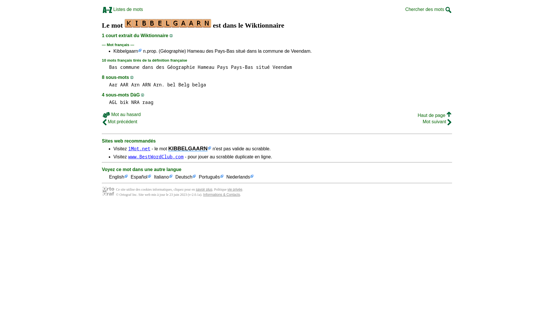 Le mot KIBBELGAARN est dans le WiktionnaireTout savoir sur le mot kibbelgaarn, 1 court extrait du Wiktionnaire, 0 anagramme, 0 préfixe, 0 suffixe, 8 sous-mots, 0 cousin, 0 anagramme+une.PNGPDF