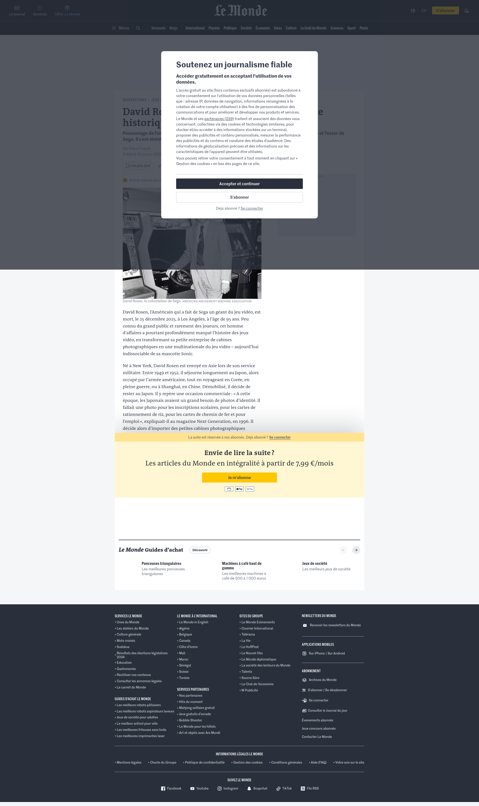 David Rosen, co-fondateur de Sega et personnalité majeure du jeu vidéo, est mort à 95 ansDavid Rosen, co-fondateur de Sega et personnalité majeure du jeu vidéo, est mort à 95 ans : Personnage de l'ombre de l'histoire du jeu vidéo, il a joué un rôle déterminant dans la naissance et l'essor de Sega. Il s'est éteint le 25 décembre 2025, à l'âge de 95 ans. David Rosen, l'Américain qui a fait de Sega un géant du jeu vidéo, est mort, le 25 décembre 2025,...PNGPDF
