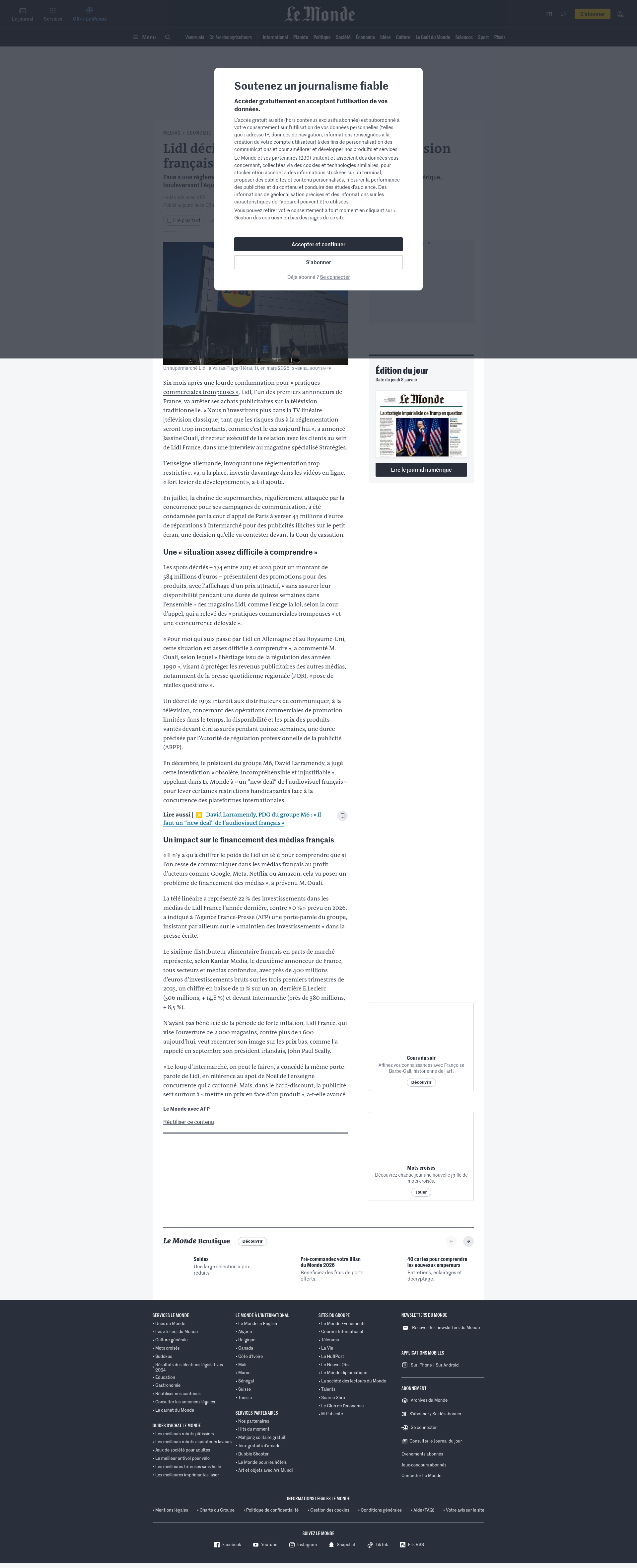 Lidl décide d’arrêter la publicité à la télévision françaiseFace à une réglementation jugée trop rigide, Lidl réoriente sa stratégie publicitaire vers le numérique, bouleversant l’équilibre entre médias traditionnels et géants du Web.PNGPDF