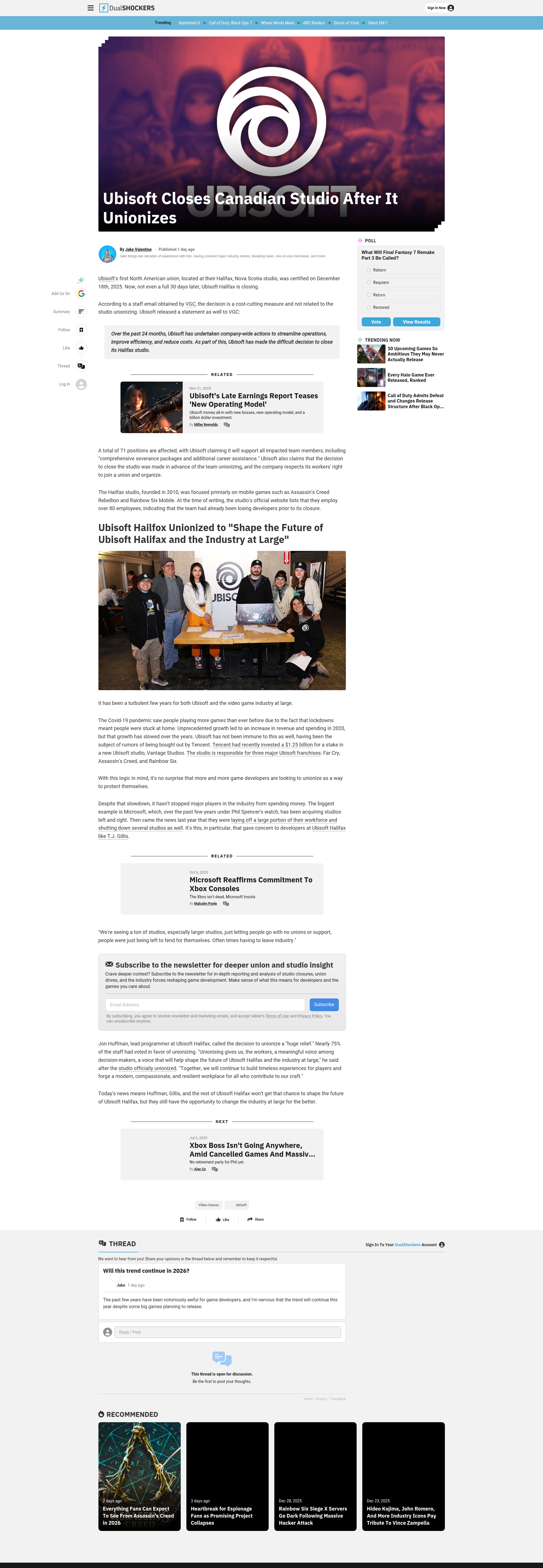 Ubisoft Closes Canadian Studio After It UnionizesUbisoft Halifax was the company's first North American studio to unionize. It is now being shut down, with over 70 developers being laid off. PNGPDF