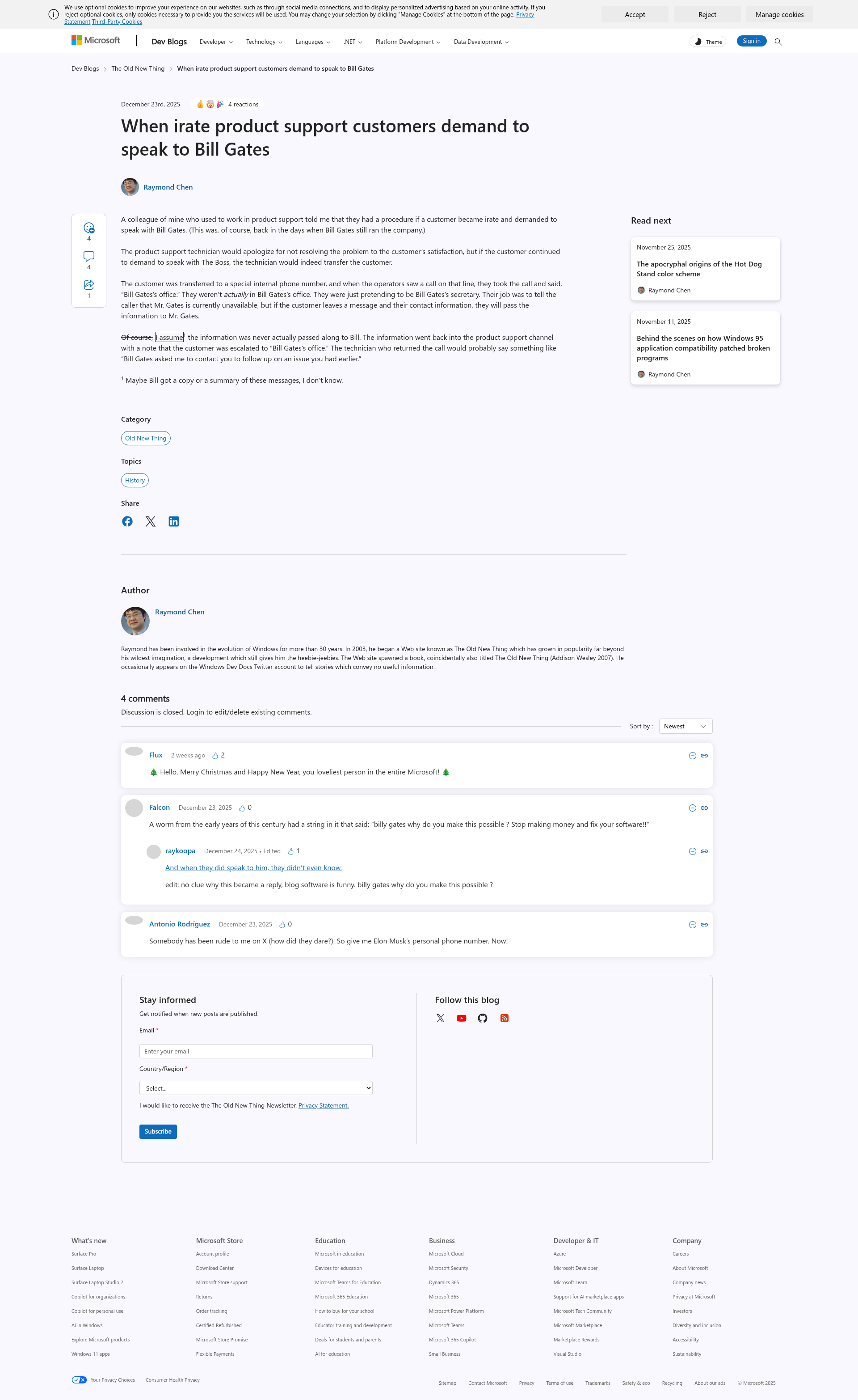 When irate product support customers demand to speak to Bill Gates - The Old New ThingSo transfer them to his office, or so it seems.PNGPDF