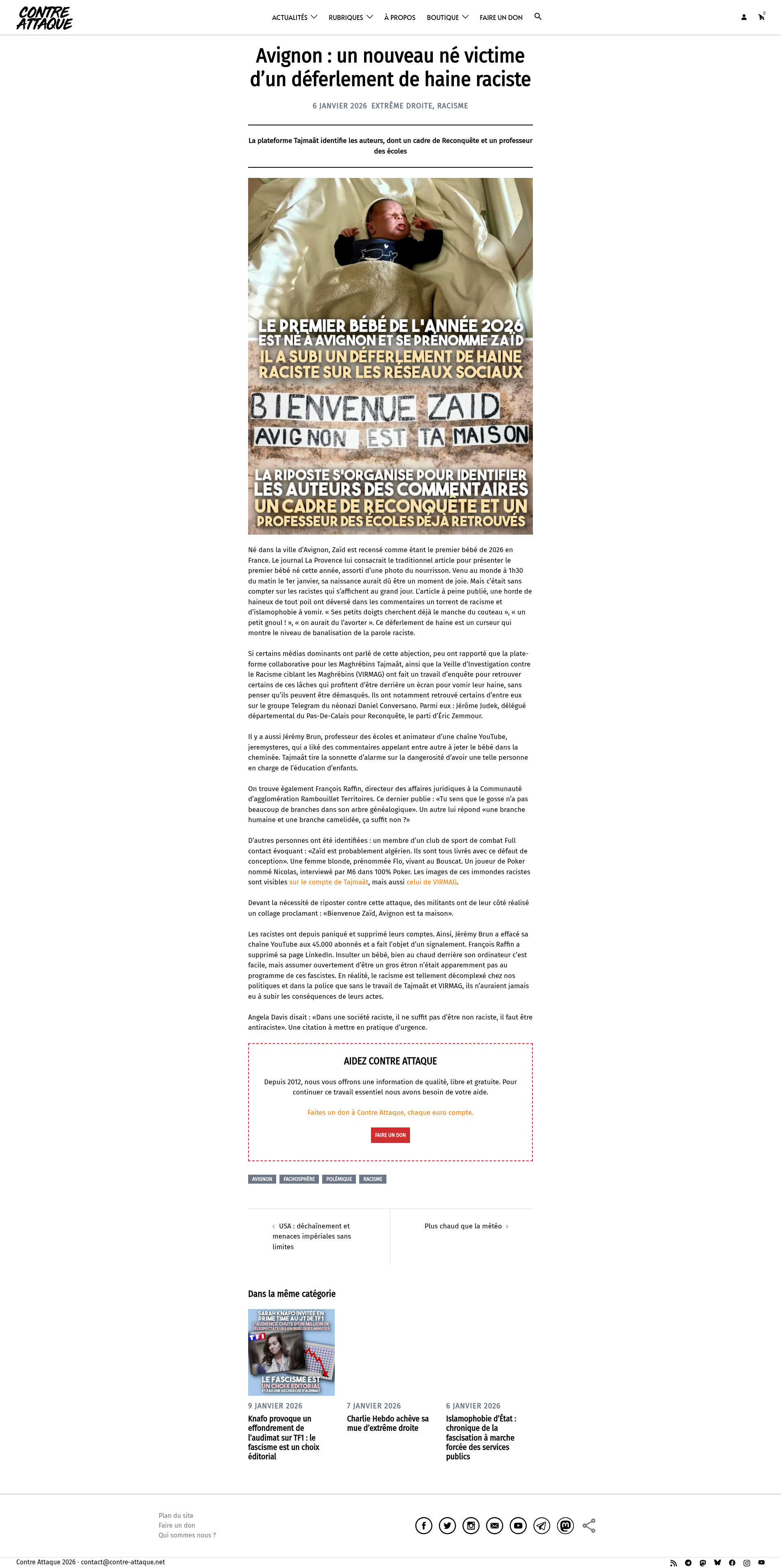Avignon : un nouveau né victime d'un déferlement de haine racisteLa plateforme Tajmaât identifie les auteurs des propos haineux, dont un cadre de Reconquête et un professeur des écolesPNGPDF