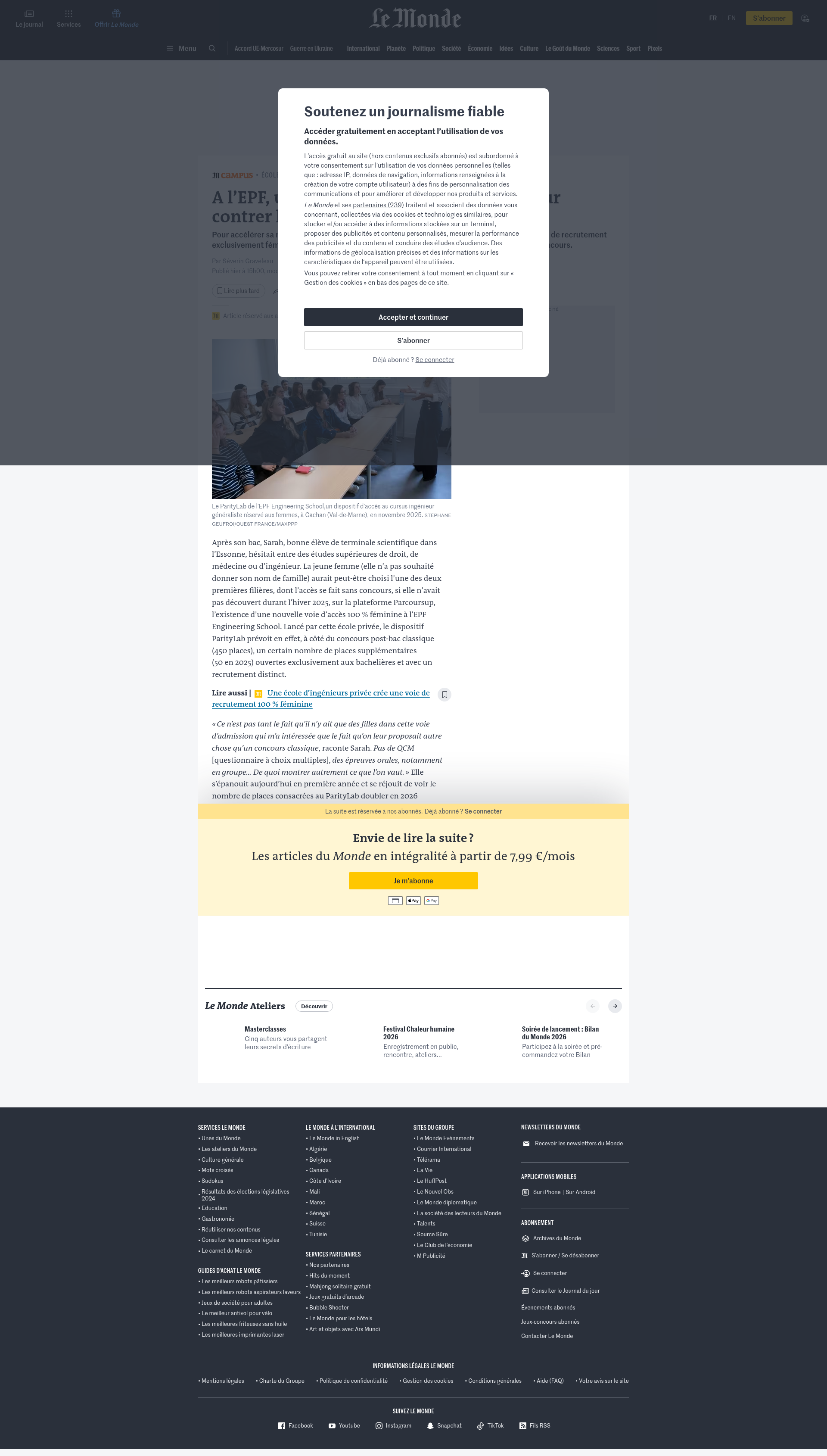 A l’EPF, un concours réservé aux filles pour contrer la « menace du stéréotype »Pour accélérer sa marche vers la parité, l’école d’ingénieurs a ouvert en 2025 une nouvelle voie de recrutement exclusivement féminine. Une initiative inédite qui interroge les stéréotypes et le modèle du concours.PNGPDF