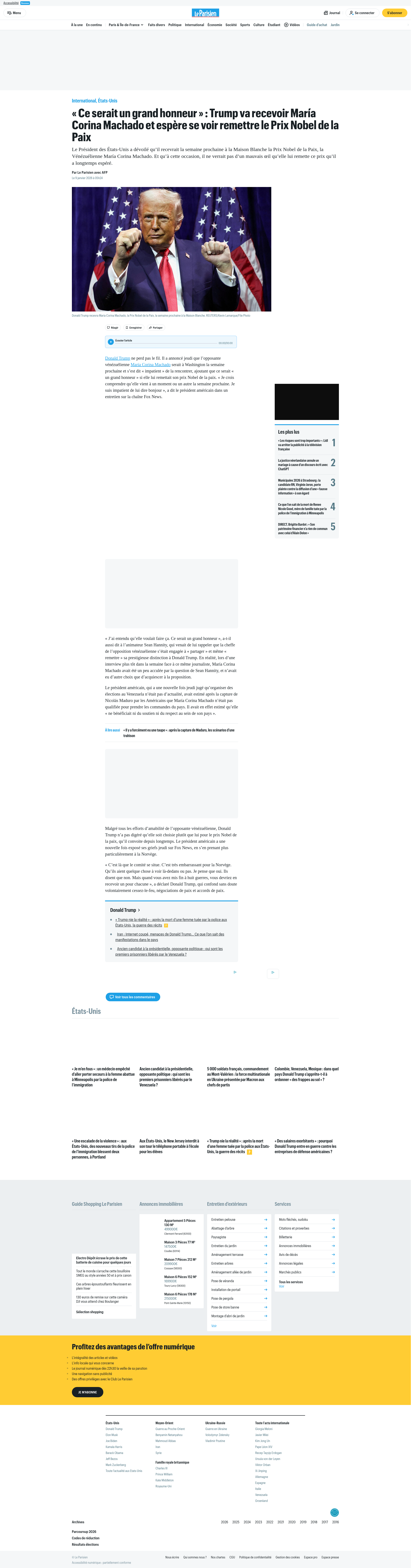 « Ce serait un grand honneur » : Trump va recevoir María Corina Machado et espère se voir remettre le Prix Nobel de la PaixLe Président des États-Unis a dévoilé qu’il recevrait la semaine prochaine à la Maison Blanche la Prix Nobel de la Paix, la Vénézuélienne MaPNGPDF
