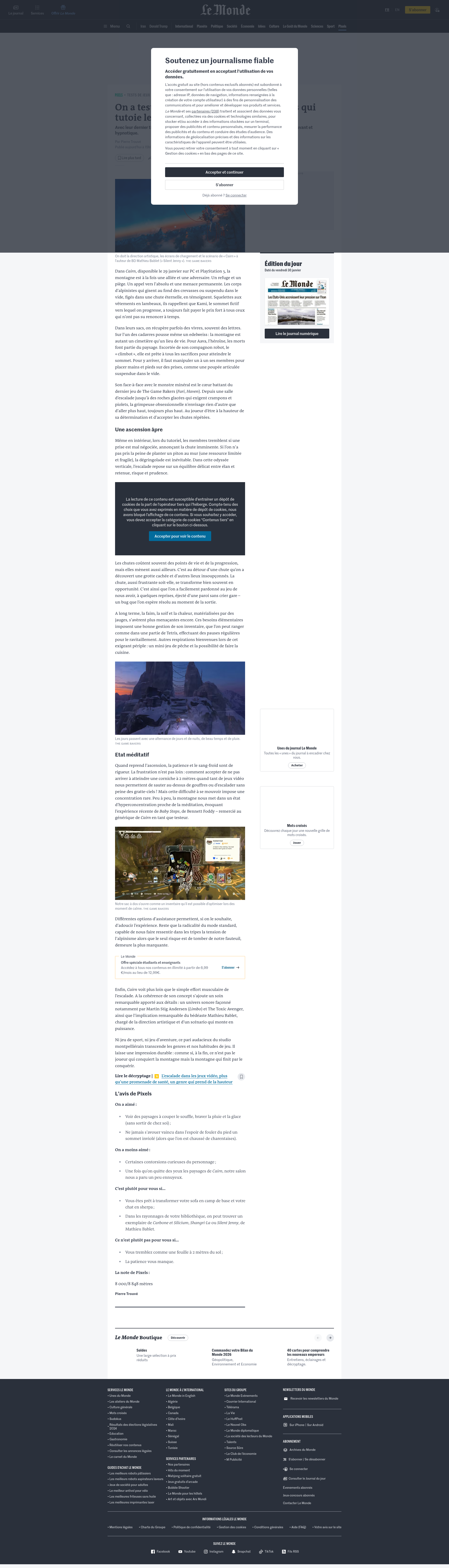 On a testé… « Cairn », le jeu vidéo français qui tutoie les sommetsAvec leur dernier titre, les Montpelliérains de The Game Bakers signent un jeu d’escalade éprouvant et hypnotique.PNGPDF