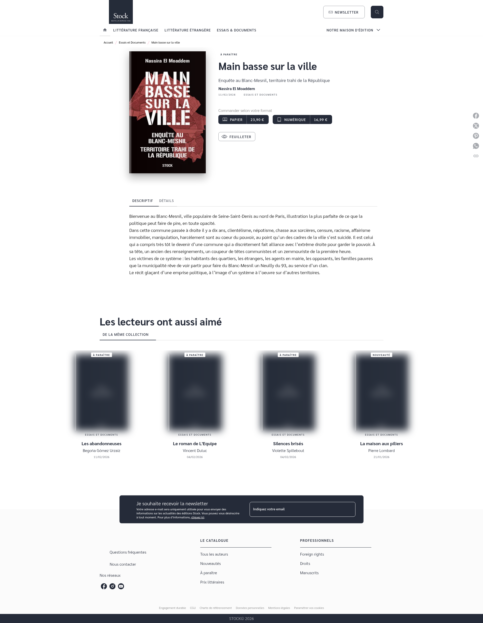 Main basse sur la ville (Grand format - Broché 2026), de Nassira El Moaddem | StockBienvenue au Blanc-Mesnil, ville populaire de Seine-Saint-Denis au nord de Paris, illustration la plus parfaite de ce que la politique peut faire de pPNGPDF