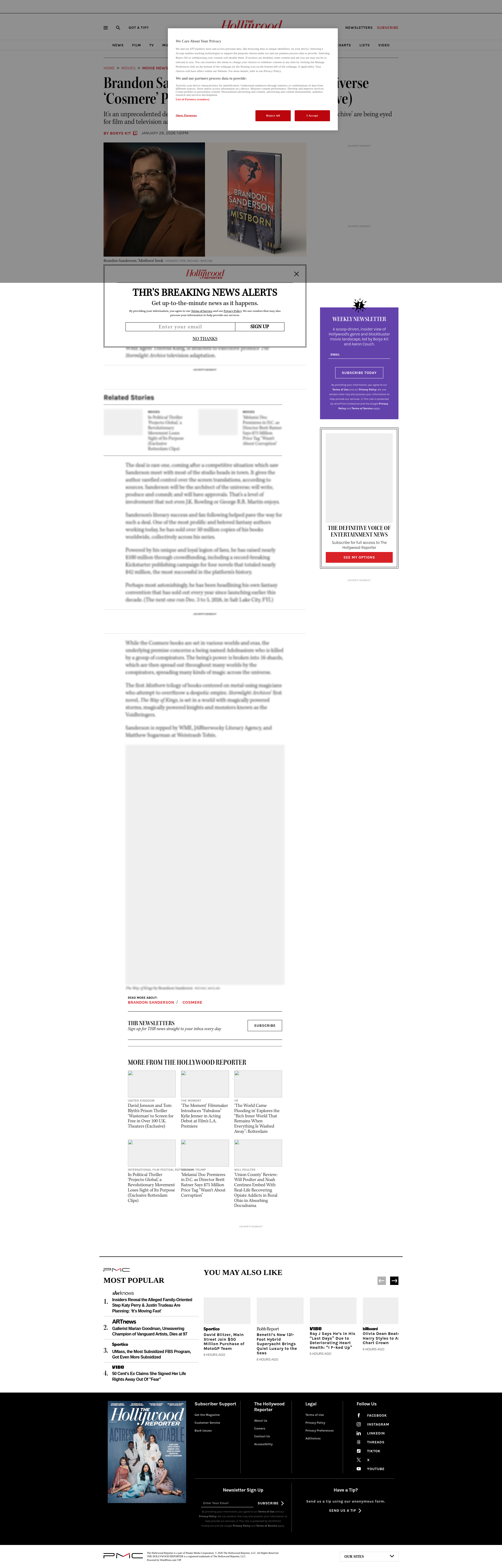 Brandon Sanderson’s Literary Fantasy Universe ‘Cosmere’ Picked Up by Apple TV (Exclusive)It's an unprecedented deal for the author, whose 'Mistborn' series and 'The Stormlight Archive' are being eyed for film and television adaptation, respectively.PNGPDF