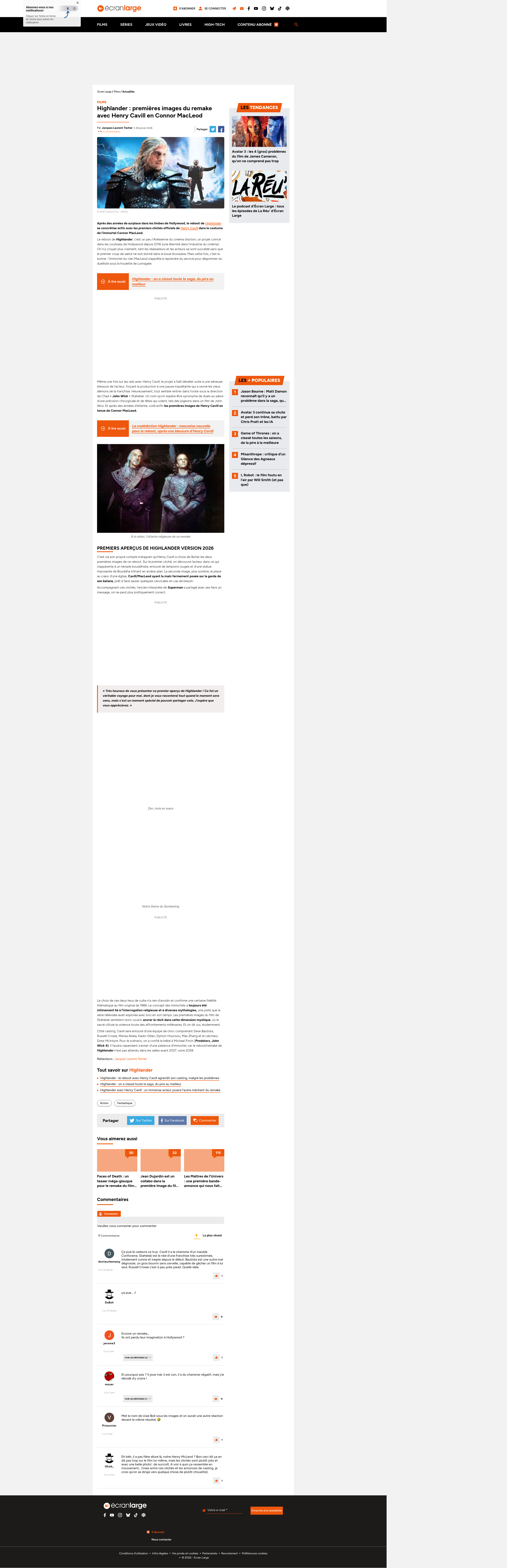 Highlander : premières images du remake avec Henry Cavill en Connor MacLeodIl aura fallu plus de dix ans d'attente, mais ça y est, voilà enfin les premières images officielles du reboot/remake d'Highlander, avec Henry Cavill.PNGPDF