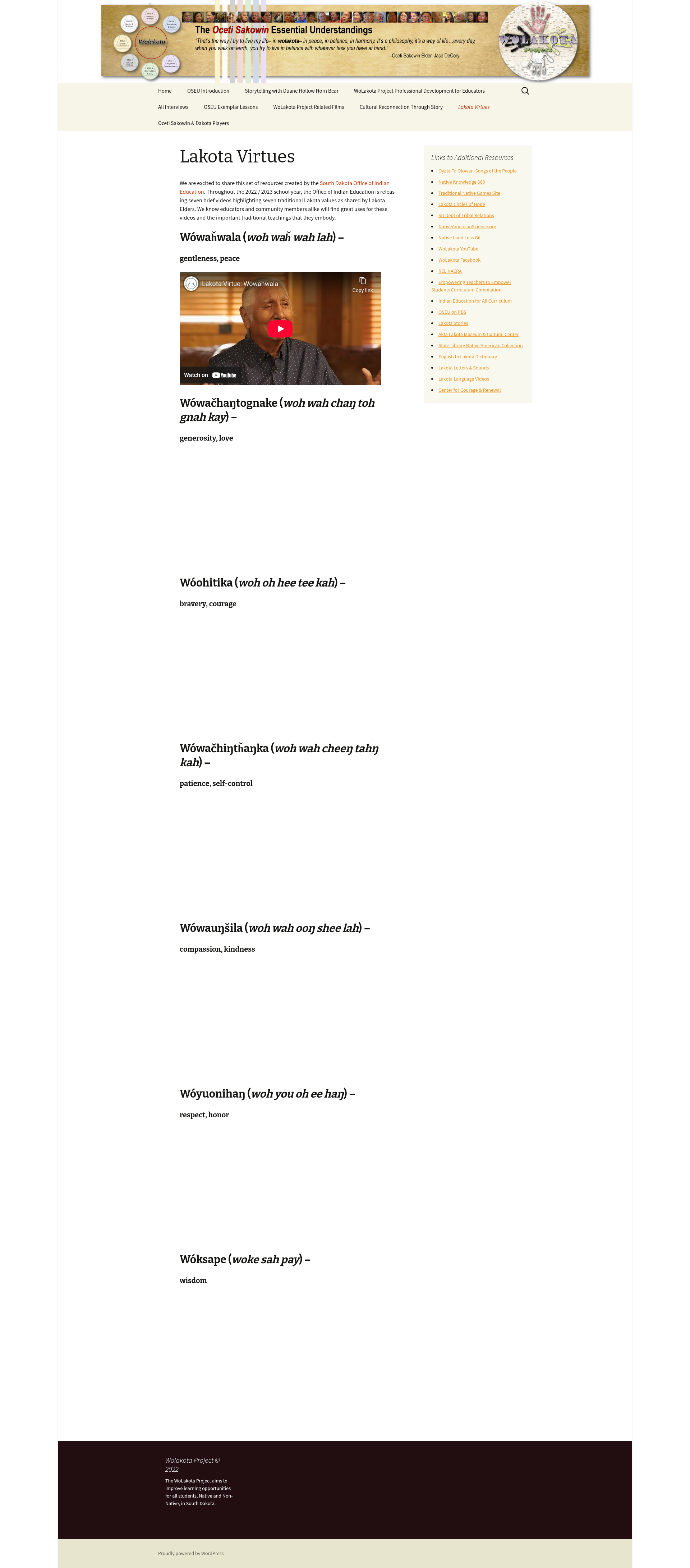Lakota Virtues - WoLakota ProjectVideos of Indigenous Lakota Elders sharing the meaning and value of traditional Lakota virtues and teachingsPNGPDF