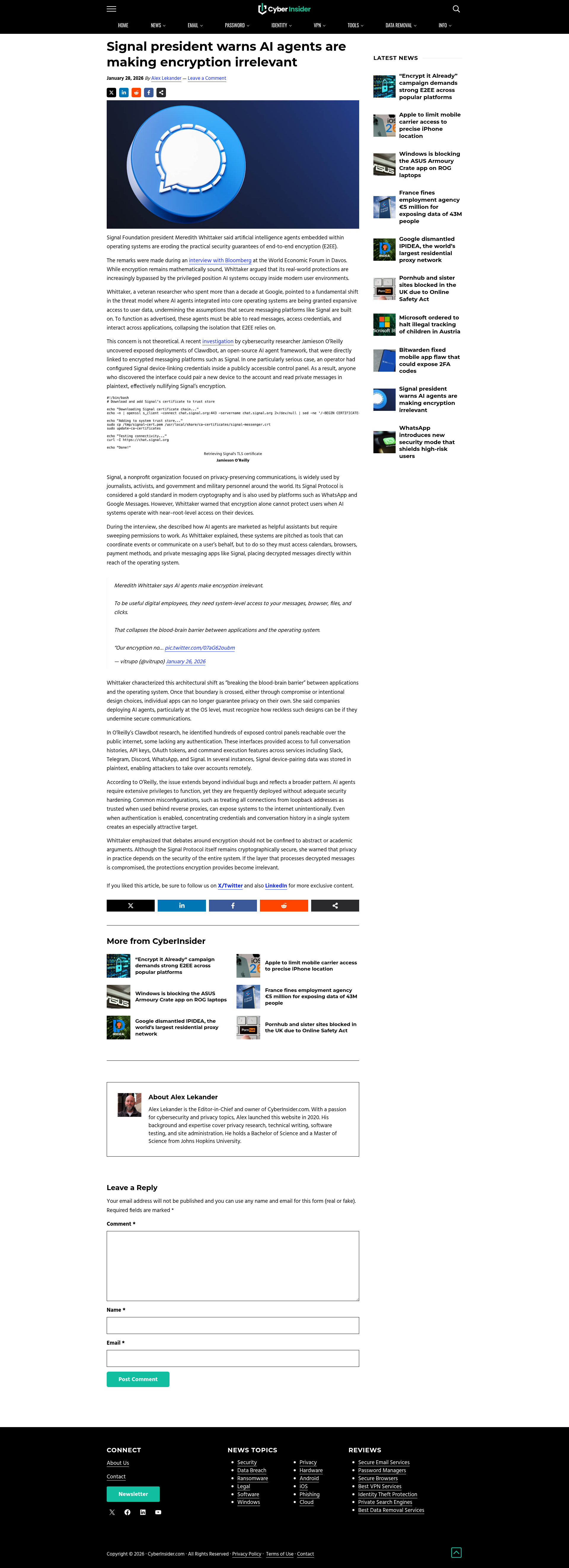 Signal president warns AI agents are making encryption irrelevantSignal president Meredith Whittaker said AI agents embedded within operating systems are eroding the practical security guarantees of E2EE.PNGPDF