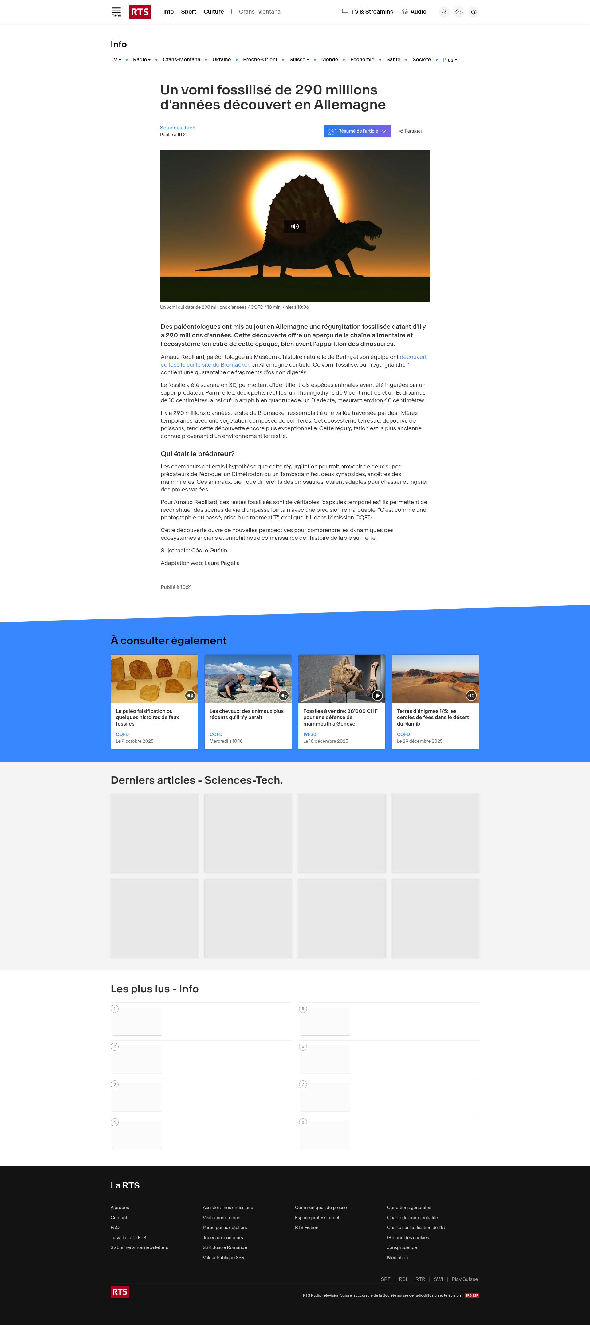 Un vomi fossilisé de 290 millions d'années découvert en Allemagne | RTSDes paléontologues ont mis au jour en Allemagne une régurgitation fossilisée datant d'il y a 290 millions d'années. Cette découverte offre un aperçu de la chaîne alimentaire et l'écosystème terrestre de cette époque, bien avant l'apparition des dinosaures.PNG