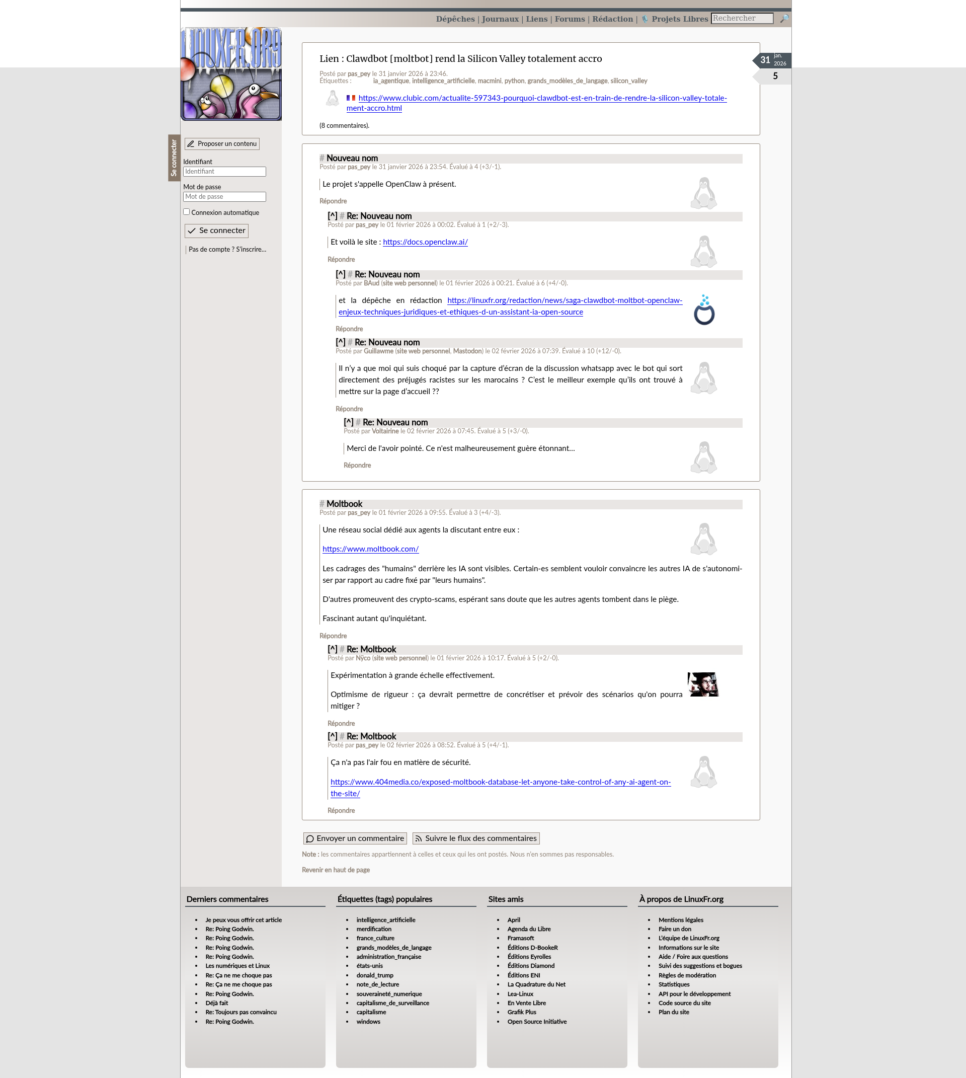 Clawdbot [moltbot] rend la Silicon Valley totalement accro - LinuxFr.orgClawdbot [moltbot] rend la Silicon Valley totalement accroPNGPDF