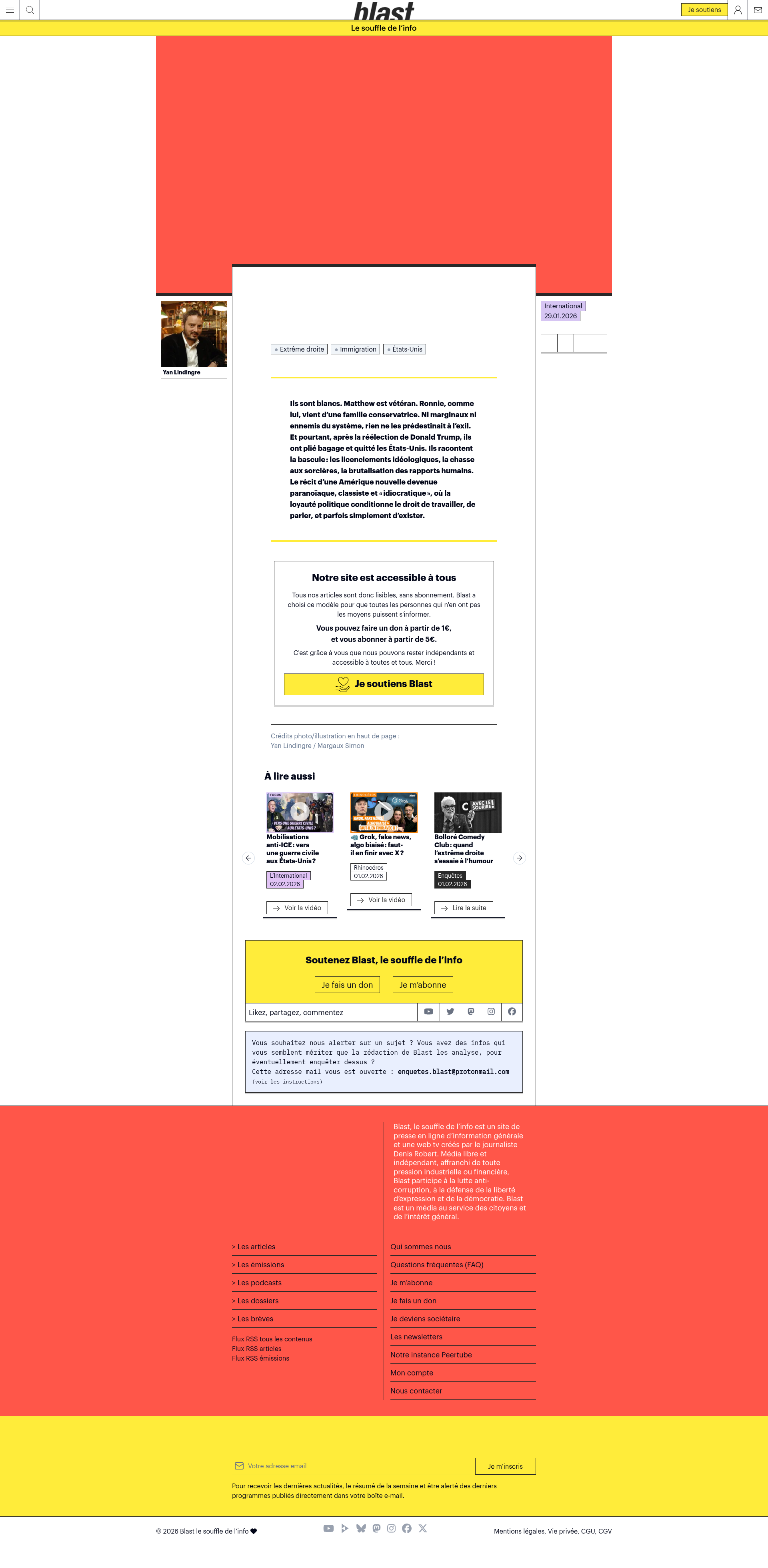 Face au système Trump, quand certains choisissent de fuirIls sont blancs. Matthew est vétéran. Ronnie, comme lui, vient d’une famille conservatrice. Ni marginaux ni ennemis du système, rien ne les prédestinait à l’exil. Et pourtant, après la réélection de Donald Trump, ils ont plié bagage et quitté les…PNGPDF