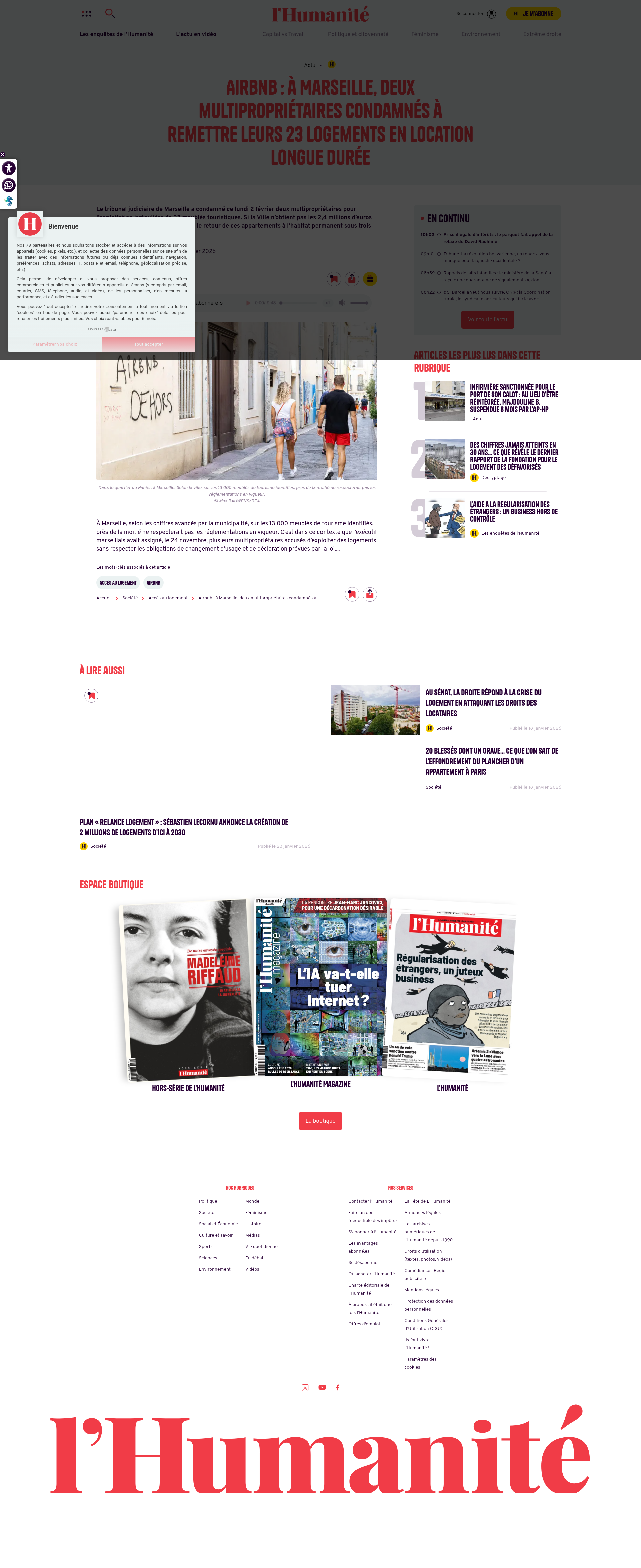 Airbnb : à Marseille, deux multipropriétaires condamnés à remettre leurs 23 logements en location longue durée - L'Humanité Le tribunal judiciaire de Marseille a condamné ce lundi 2 février deux multipropriétaires pour l’exploitation irrégulière de 23 meublés touristiques. Si la Ville n’obtient pas le...PNGPDF