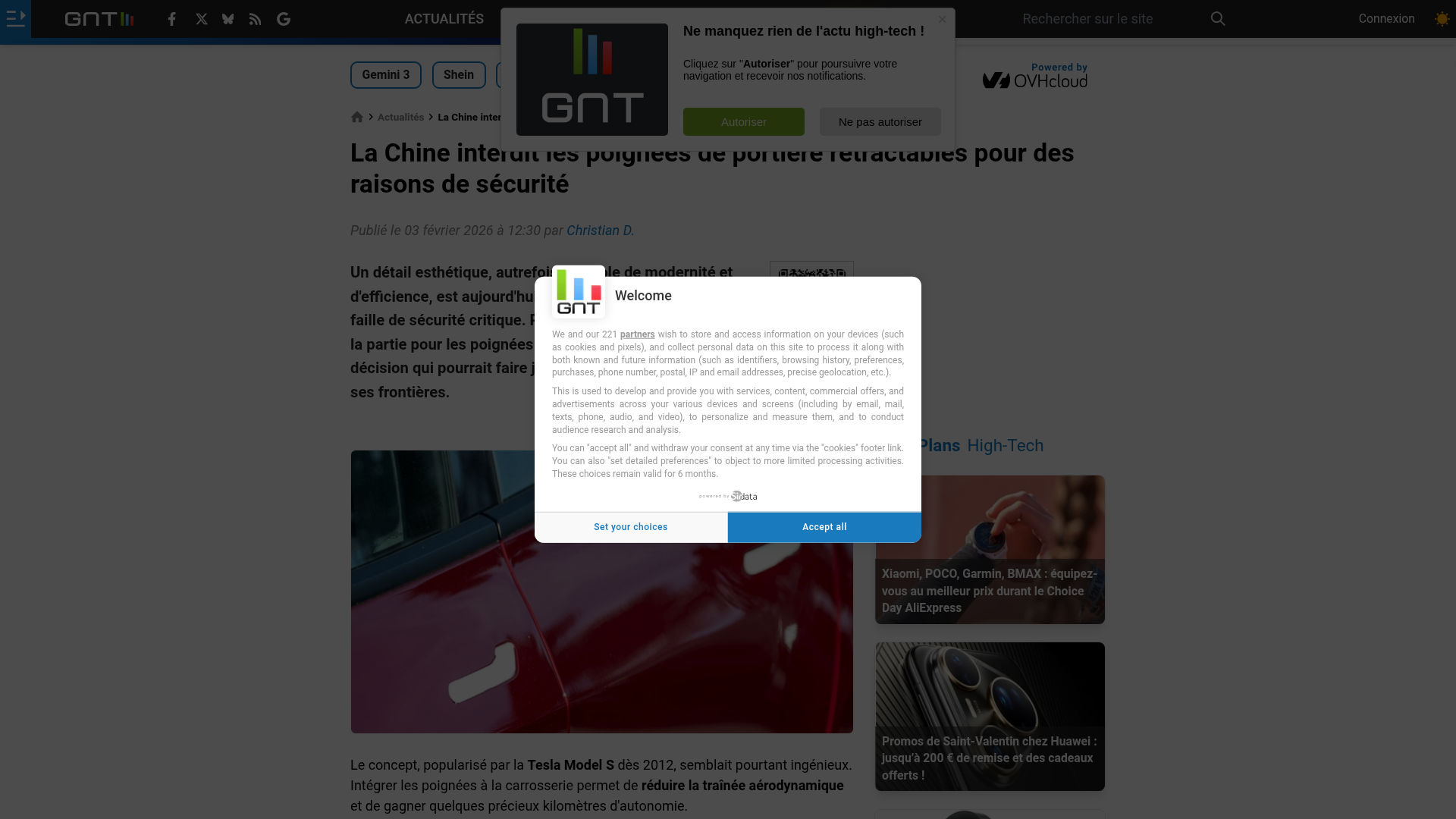 La Chine interdit les poignées de portière rétractables pour des raisons de sécuritéGNT est le portail Hi-Tech français consacré aux nouvelles technologies (internet, logiciel, matériel, mobilité, entreprise) et au jeu vidéo PC et consoles.PNGPDF