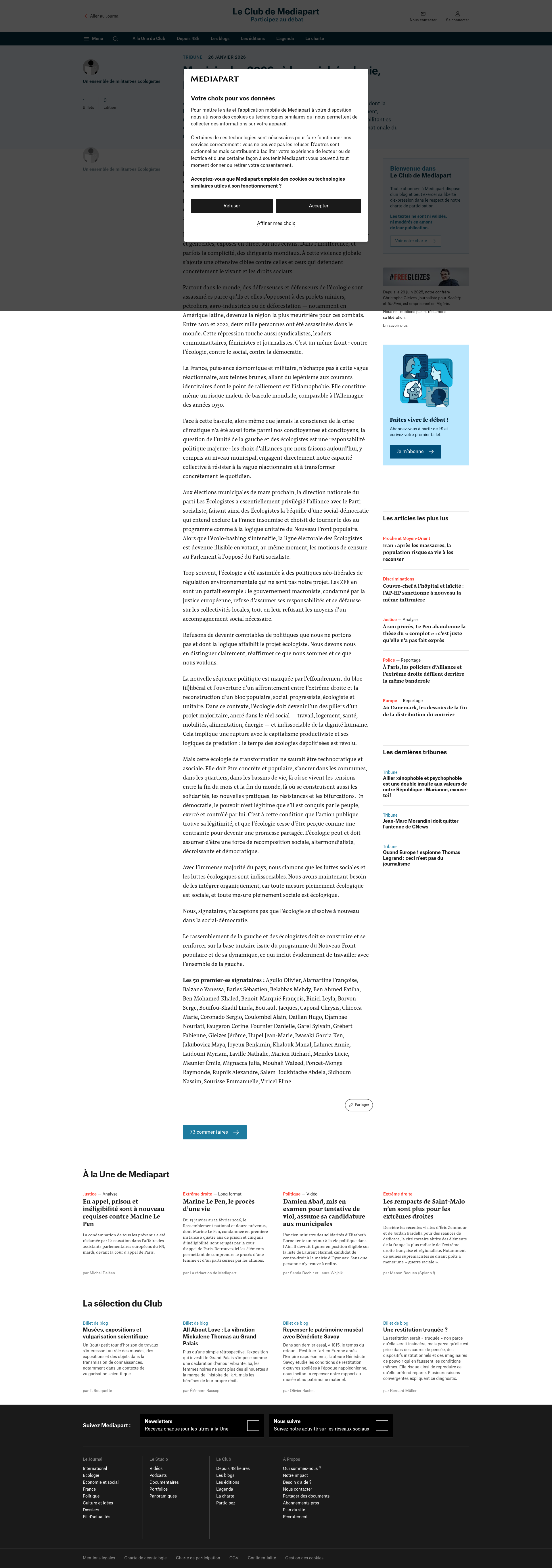 Municipales 2026 : à la social-écologie, préférons l’écologie de rupture« Refusons de devenir comptables de politiques que nous ne portons pas et dont la logique affaiblit le projet écologiste. Nous devons nous en distinguer clairement, réaffirmer ce que nous sommes et c…PNGPDF