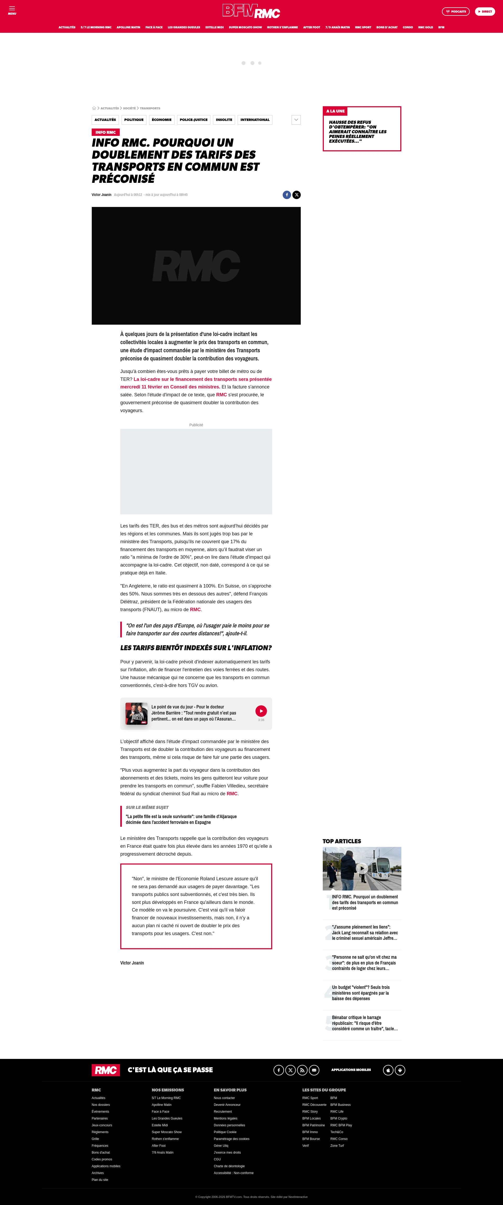 INFO RMC. Pourquoi un doublement des tarifs des transports en commun est préconiséÀ quelques jours de la présentation d'une loi-cadre incitant les collectivités locales à augmenter le prix des transports en commun, une étude d'impact commandée par le ministère des Transports préconise de quasiment doubler la contribution des voyageurs.PNGPDF