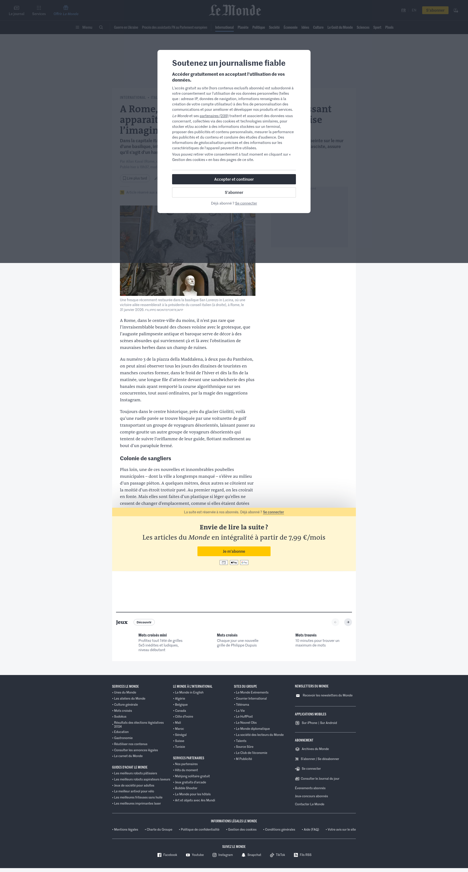 A Rome, la restauration d’une fresque laissant apparaître le visage de Giorgia Meloni attise l’imaginationDans la capitale italienne, la ressemblance entre la présidente du conseil et une victoire ailée, peinte sur le mur d’une basilique, interroge. L’auteur, Bruno Valentinetti, 83 ans, peintre amateur et ancien néofasciste, assure qu’il s’agit d’un hasard.PNGPDF