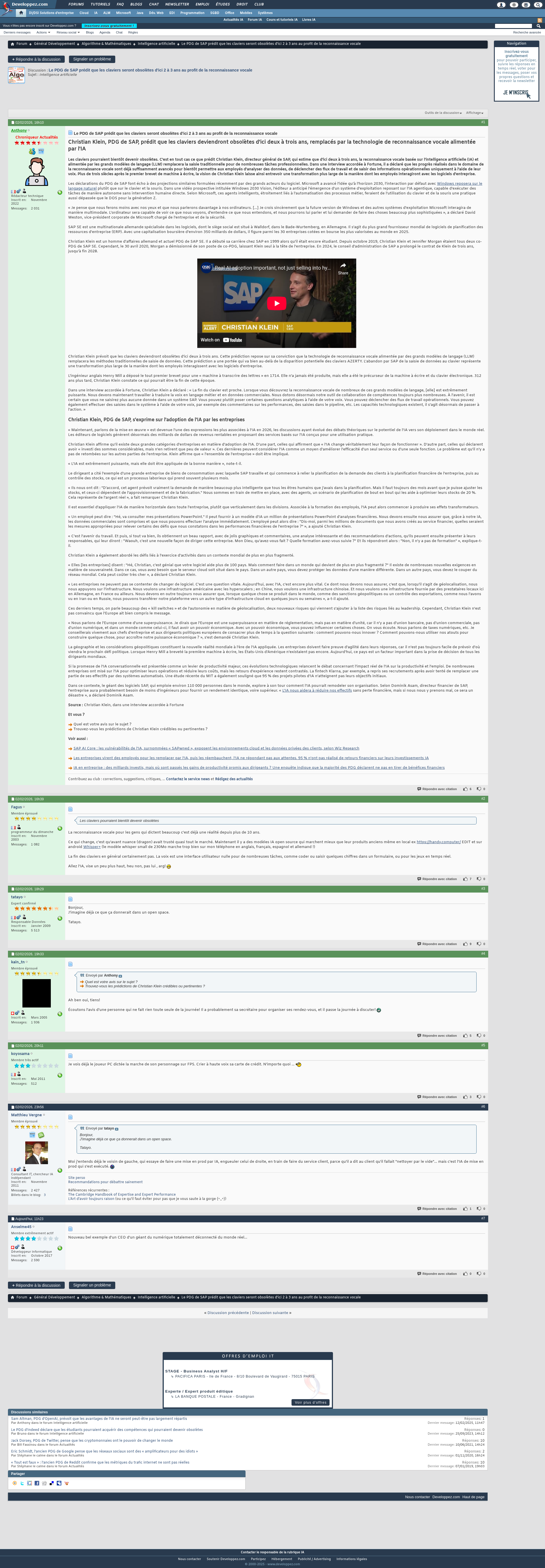 Le PDG de SAP prédit que les claviers seront obsolètes d'ici 2 à 3 ans au profit de la reconnaissance vocale - Intelligence artificielleChristian Klein, PDG de SAP, prédit que les claviers deviendront obsolètes d'ici deux à trois ans, remplacés par la technologie de reconnaissance vocale alimentée par l'IA Les claviers pourraient bientôtPNGPDF