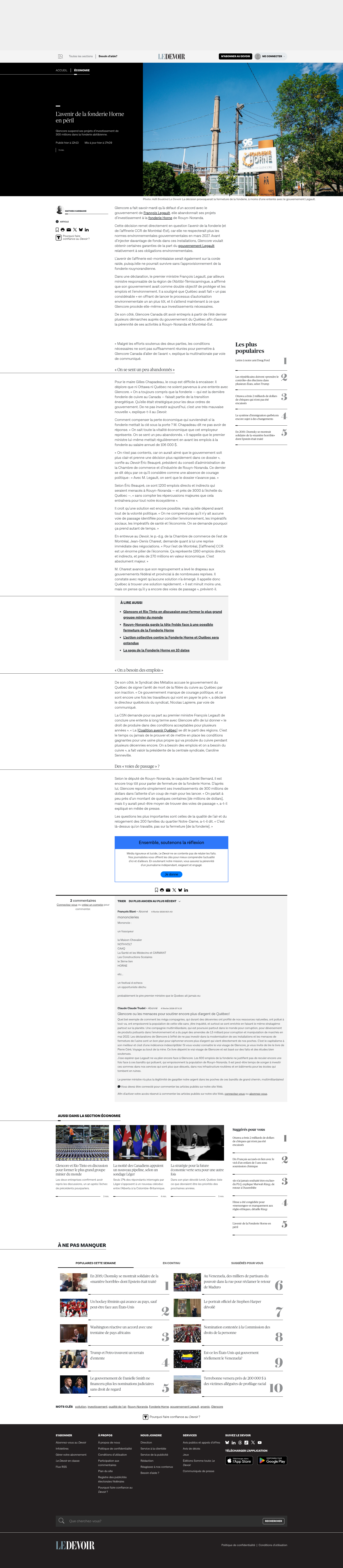 L’avenir de la fonderie Horne en périlGlencore suspend ses projets d’investissement de 300 millions dans la fonderie abitibienne.PNGPDF