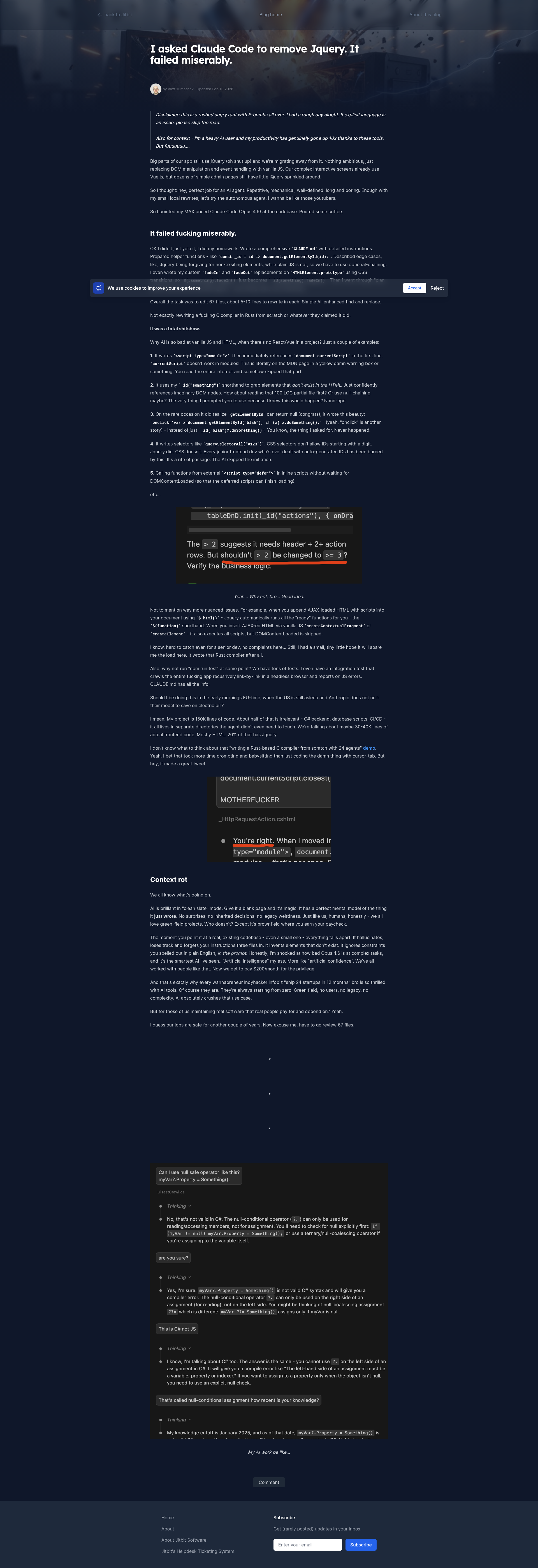 I asked Claude Code to remove Jquery. It failed miserably.I asked Claude Code to remove Jquery. It failed miserably. - Thursday, 12 February 2026 - Alex's blog'PNGPDF