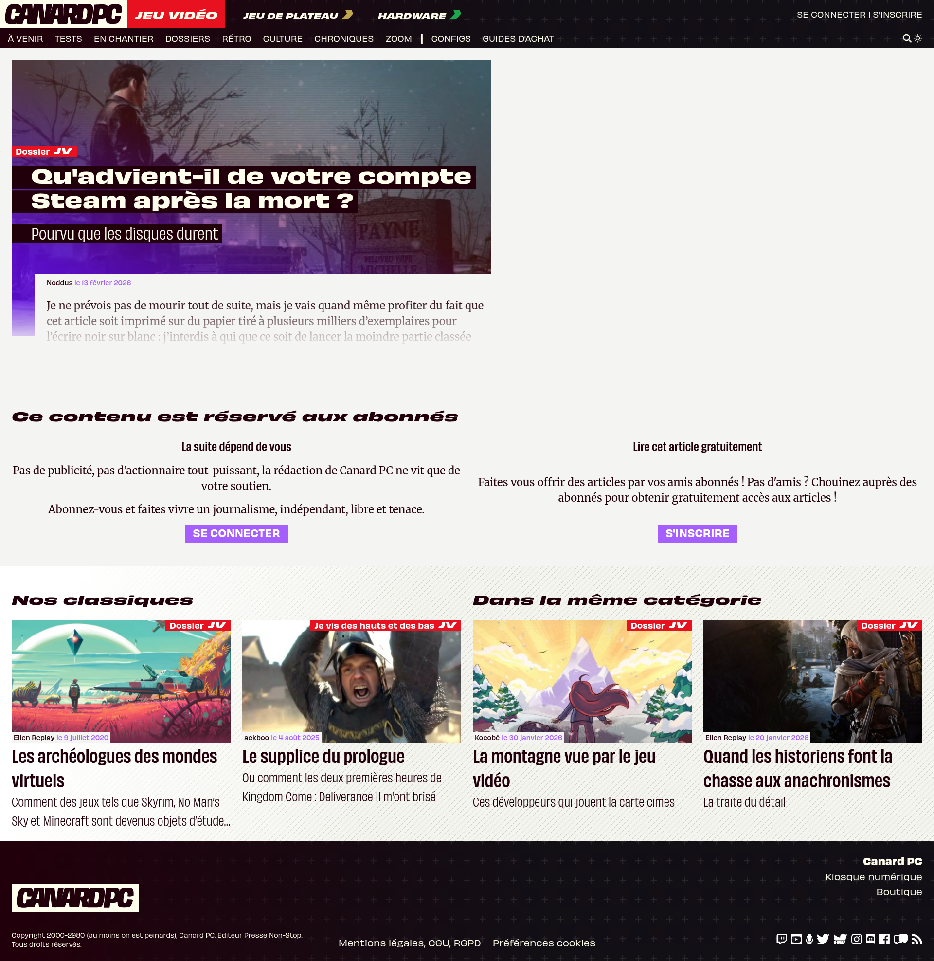 Qu'advient-il de votre compte Steam après la mort ?Je ne prévois pas de mourir tout de suite, mais je vais quand même profiter du fait que cet article soit imprimé sur du papier tiré à plusieurs milliers d’exemplaires pour l’écrire noir sur blanc : j’interdis à qui que ce soit de lancer la moindre partie classée sur Counter-Strike avec mon compte. Même décédé, je tiens à mon rang ELO.PNGPDF