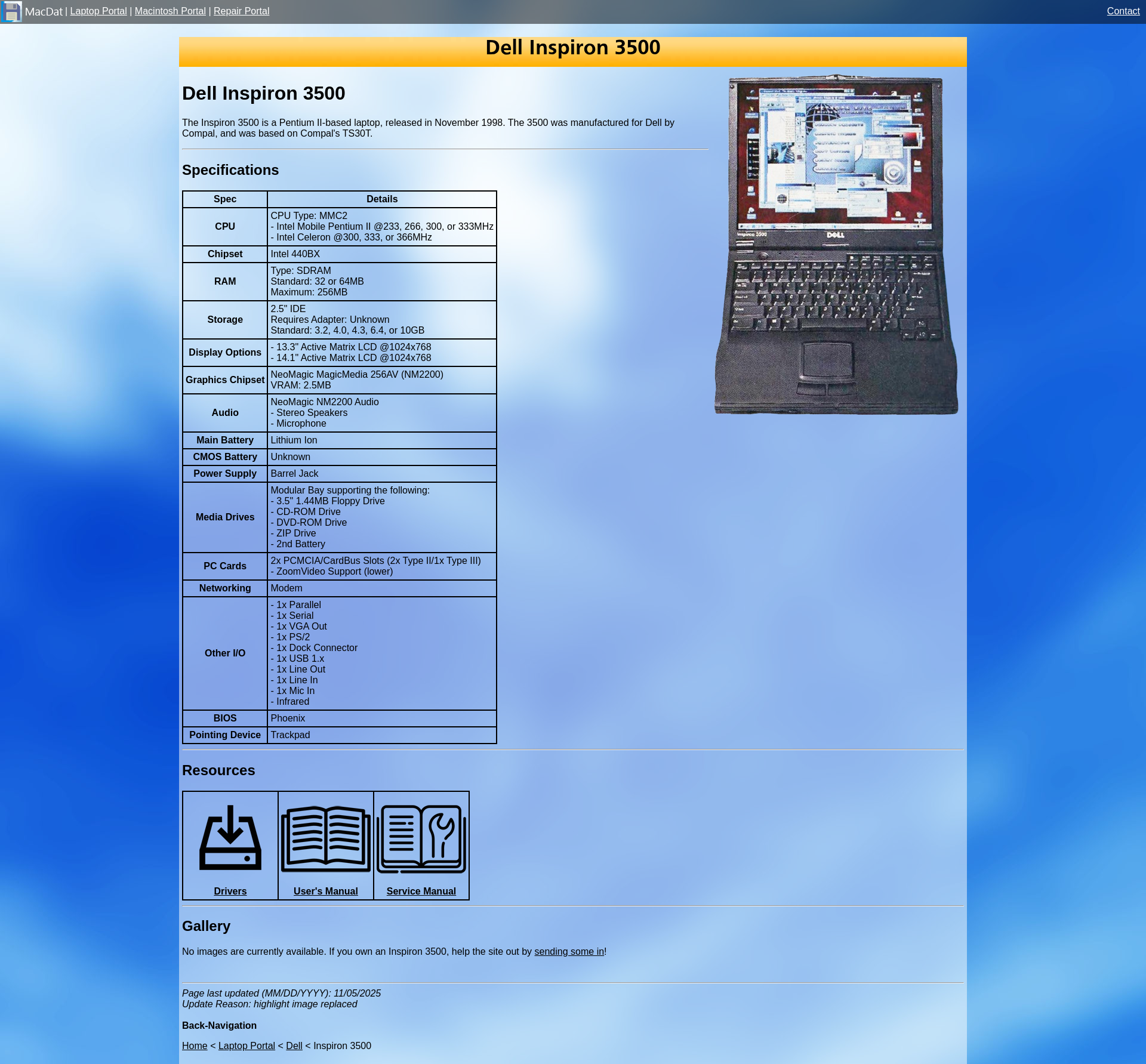 Dell Inspiron 3500 - MacDatSpecifications, manuals, driver downloads, and more related to the Dell Inspiron 3500.PNGPDF