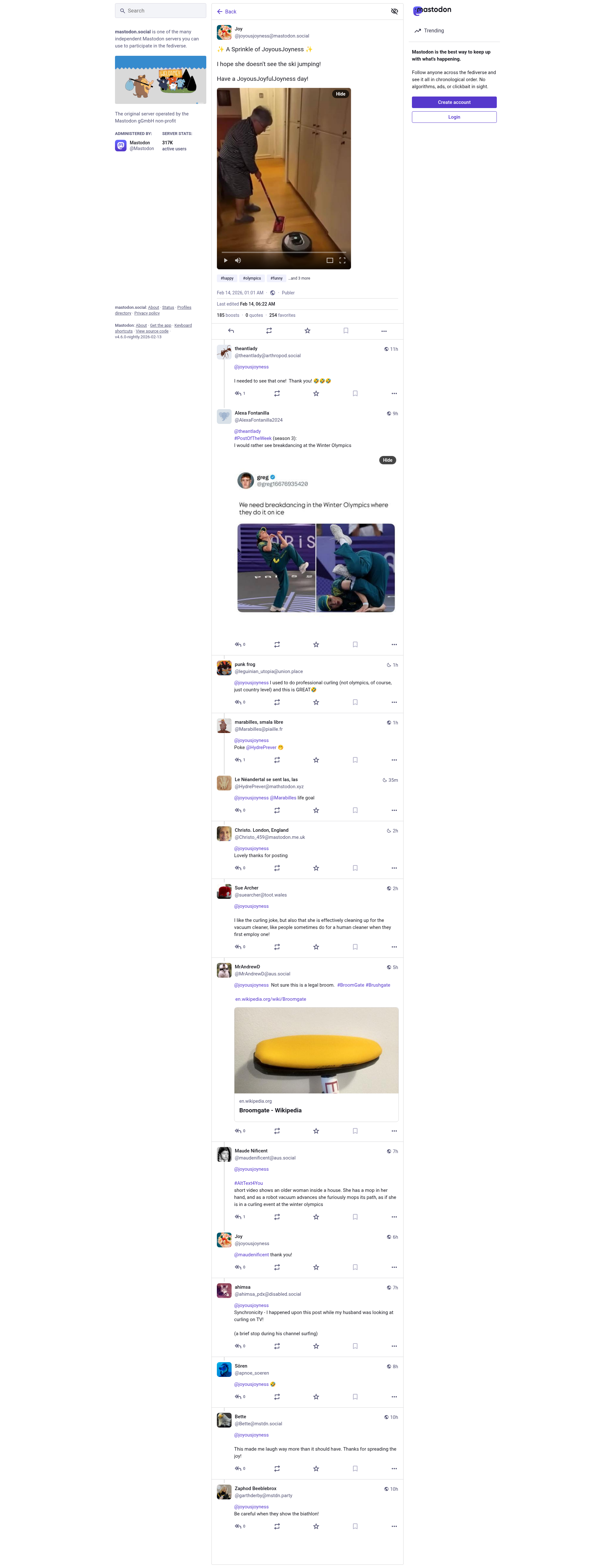 Joy (@joyousjoyness@mastodon.social)Attached: 1 video ✨ A Sprinkle of JoyousJoyness ✨ I hope she doesn't see the ski jumping! Have a JoyousJoyfulJoyness day! #happy #olympics #funny #cute #joyousjoyness #repostPNGPDF