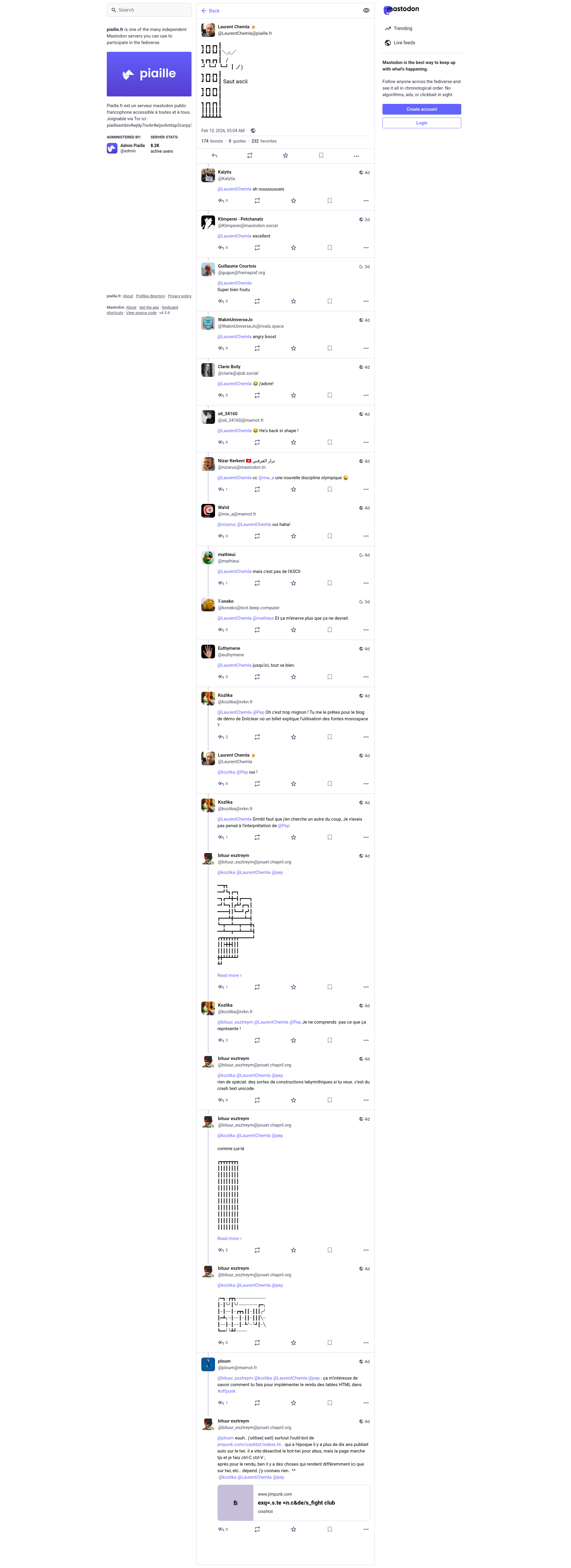 Laurent Chemla 🍺 (@LaurentChemla@piaille.fr)┓┏┓┏┓┃ ┛┗┛┗┛┃\○/ ┓┏┓┏┓┃ / ┛┗┛┗┛┃ノ) ┓┏┓┏┓┃ ┛┗┛┗┛┃ Saut ascii ┓┏┓┏┓┃ ┛┗┛┗┛┃ ┓┏┓┏┓┃ ┃┃┃┃┃┃ ┻┻┻┻┻┻PNGPDF