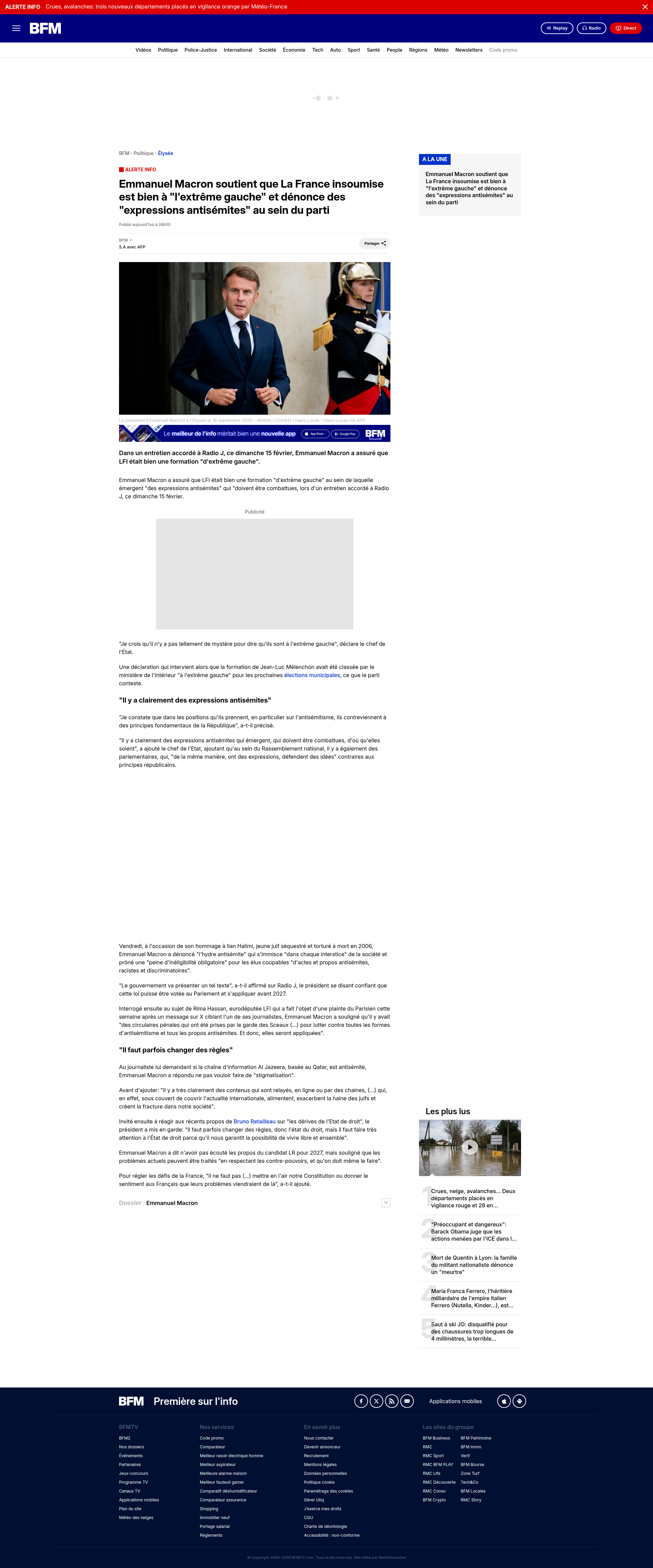 Emmanuel Macron soutient que La France insoumise est bien à "l'extrême gauche" et dénonce des "expressions antisémites" au sein du partiDans un entretien accordé à Radio J, ce dimanche 15 février, Emmanuel Macron a assuré que LFI était bien une formation "d'extrême gauche". PNGPDF