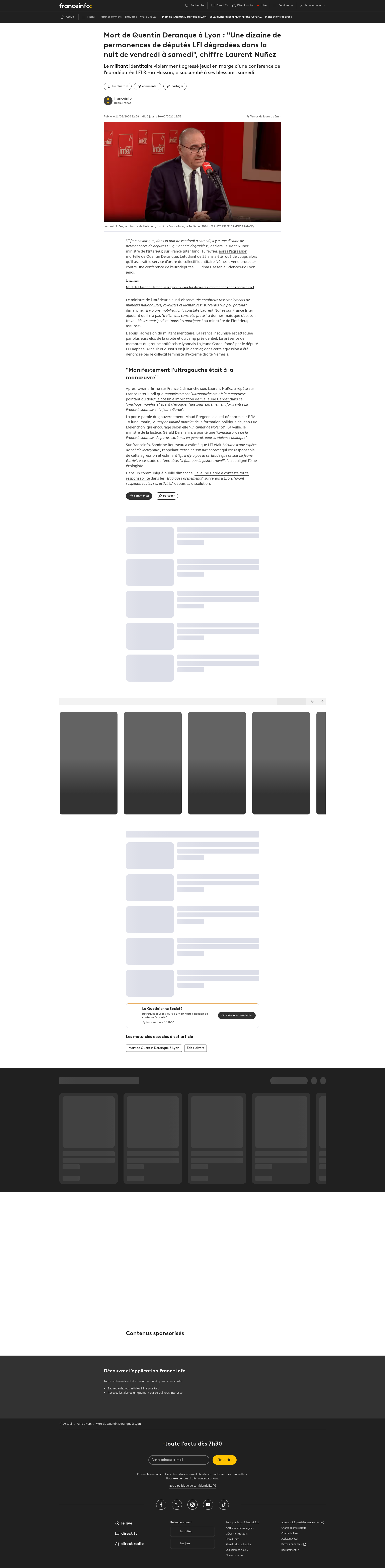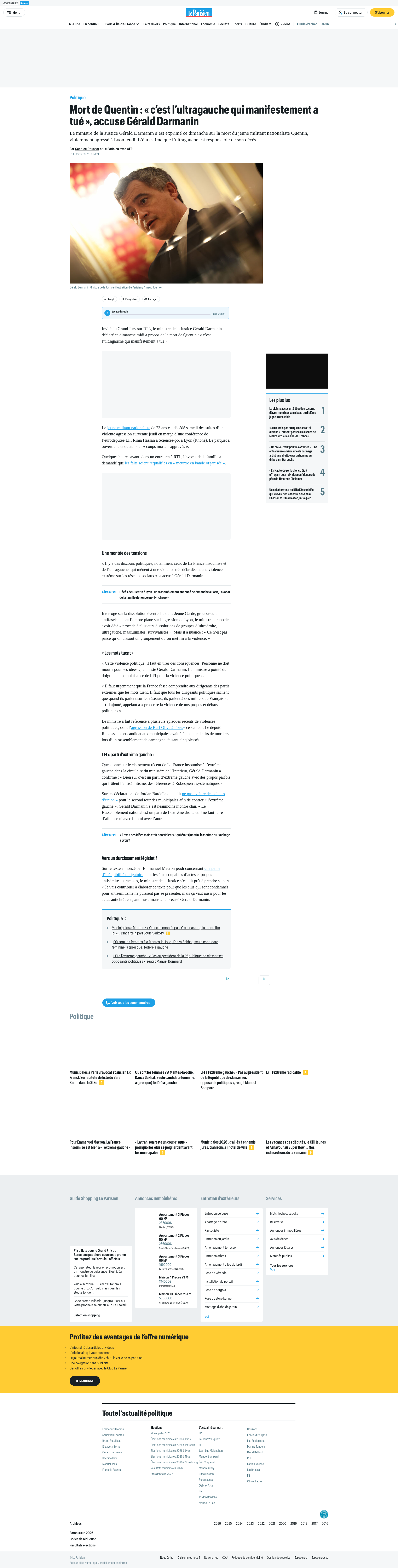 Mort de Quentin : « c’est l’ultragauche qui manifestement a tué », accuse Gérald DarmaninLe ministre de la Justice Gérald Darmanin s’est exprimé ce dimanche sur la mort du jeune militant nationaliste Quentin, violemment agressé àPNGPDF