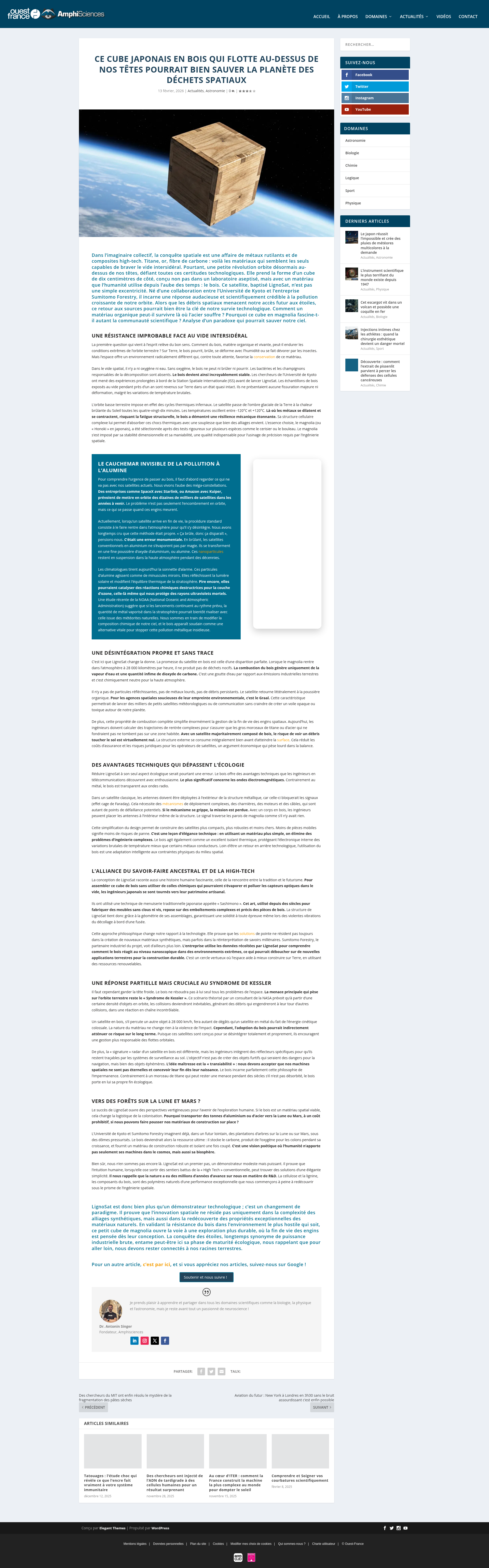 Ce cube japonais en bois qui flotte au-dessus de nos têtes pourrait bien sauver la planète des déchets spatiaux - AmphisciencesDécouvrez LignoSat, le premier satellite en bois révolutionnaire. Une innovation japonaise durable pour lutter contre la pollution et les débris spatiaux.PNGPDF