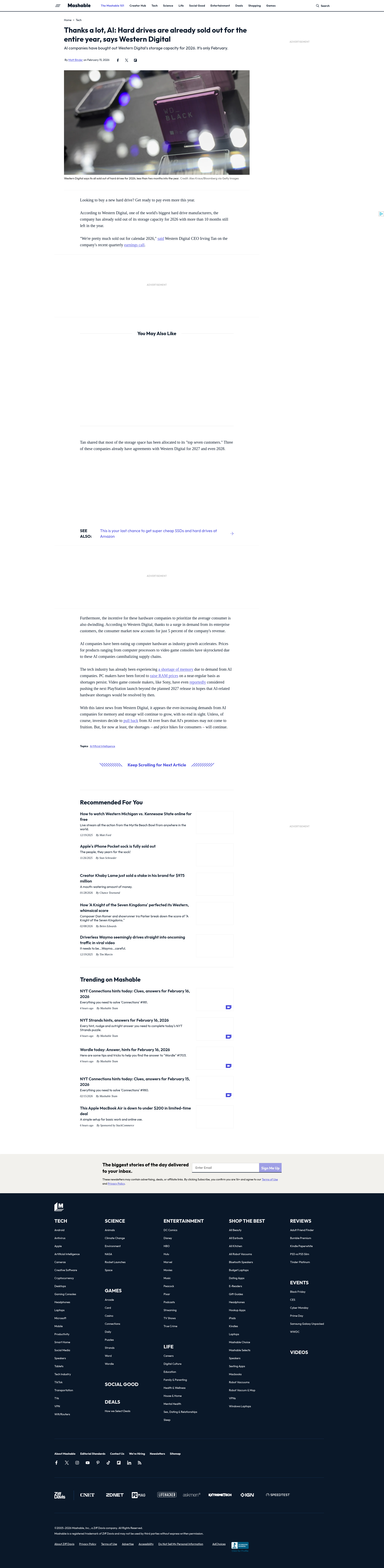Thanks a lot, AI: Hard drives are already sold out for the entire year, says Western DigitalAI companies have bought out Western Digital's storage capacity for 2026. It's only February.PNGPDF