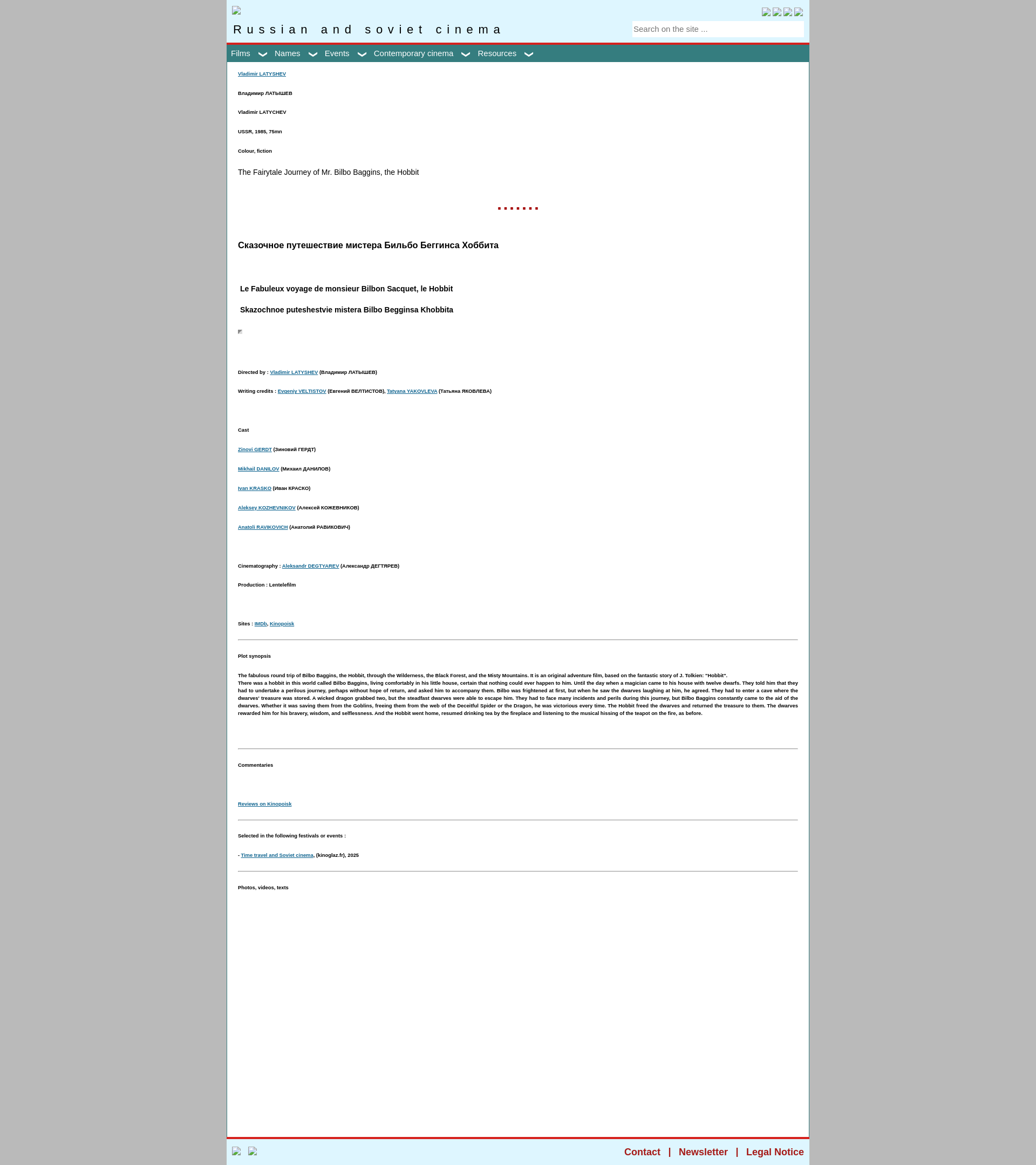 KINOGLAZ : The Fairytale Journey of Mr. Bilbo Baggins, the Hobbit (Film)Cinéma russe. Cinéma soviétique. Cinéma russe contemporain. Cinéma russe et soviétique de 1896 à nos jours. History of the Russian and Soviet cinema. История русского и советского кино. Российское кино. PNGPDF