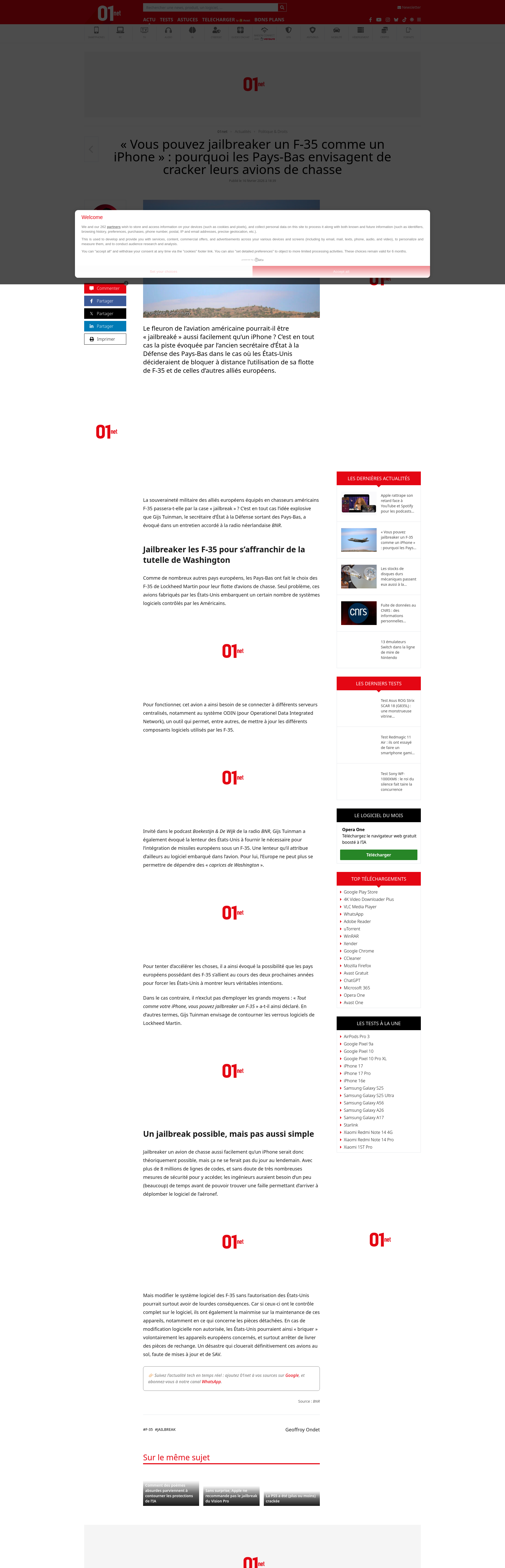 « Vous pouvez jailbreaker un F-35 comme un iPhone » : pourquoi les Pays-Bas envisagent de cracker leurs avions de chasseLe fleuron de l’aviation américaine pourrait-il être « jailbreaké » aussi facilement qu’un iPhone ? C’est en tout cas la piste évoquée par l'ancien secrétaire d’État à la Défense des Pays-Bas dans le cas où les États-Unis décideraient de bloquer à distance l’utilisation de sa flotte de F-35 et de celles d’autres alliés européens.PNGPDF