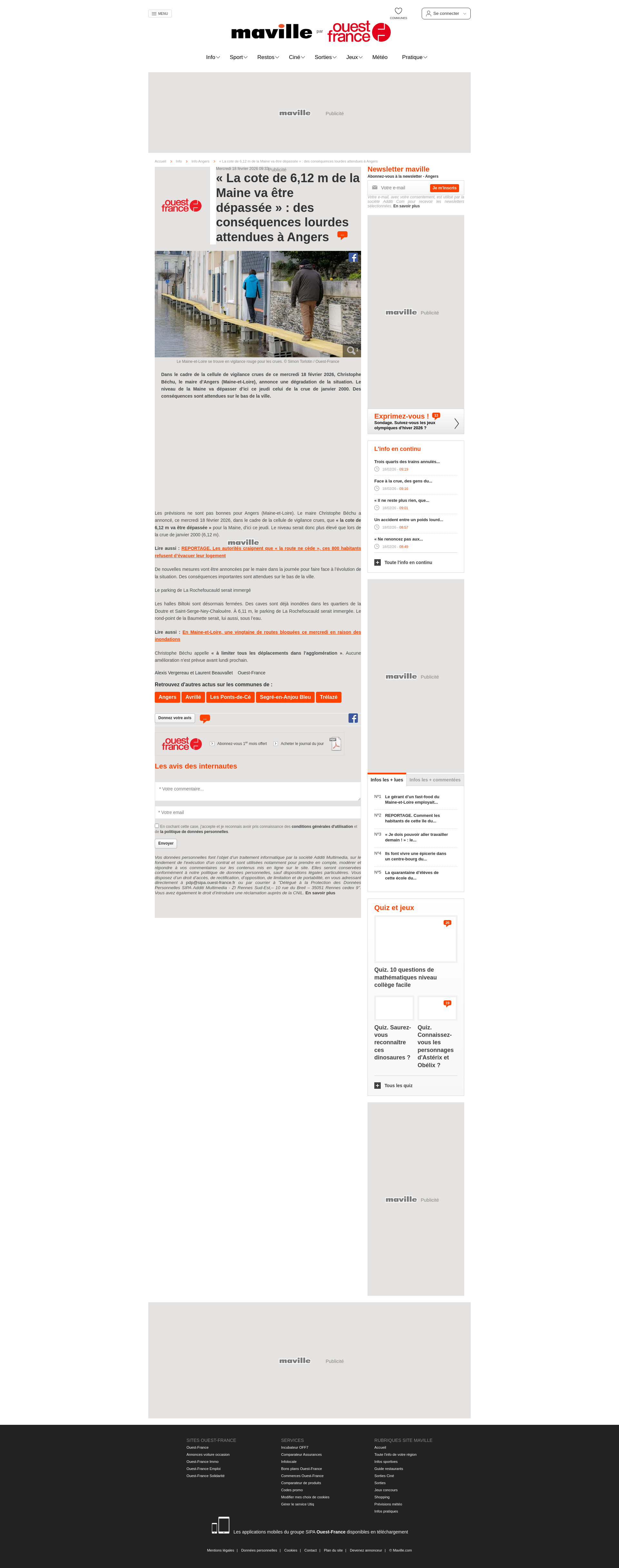 « La cote de 6,12 m de la Maine va être dépassée » : des conséquences lourdes attendues àInfo Laval « La cote de 612 m de la Maine va être dépassée » des conséquences lourdes... AngersPNGPDF
