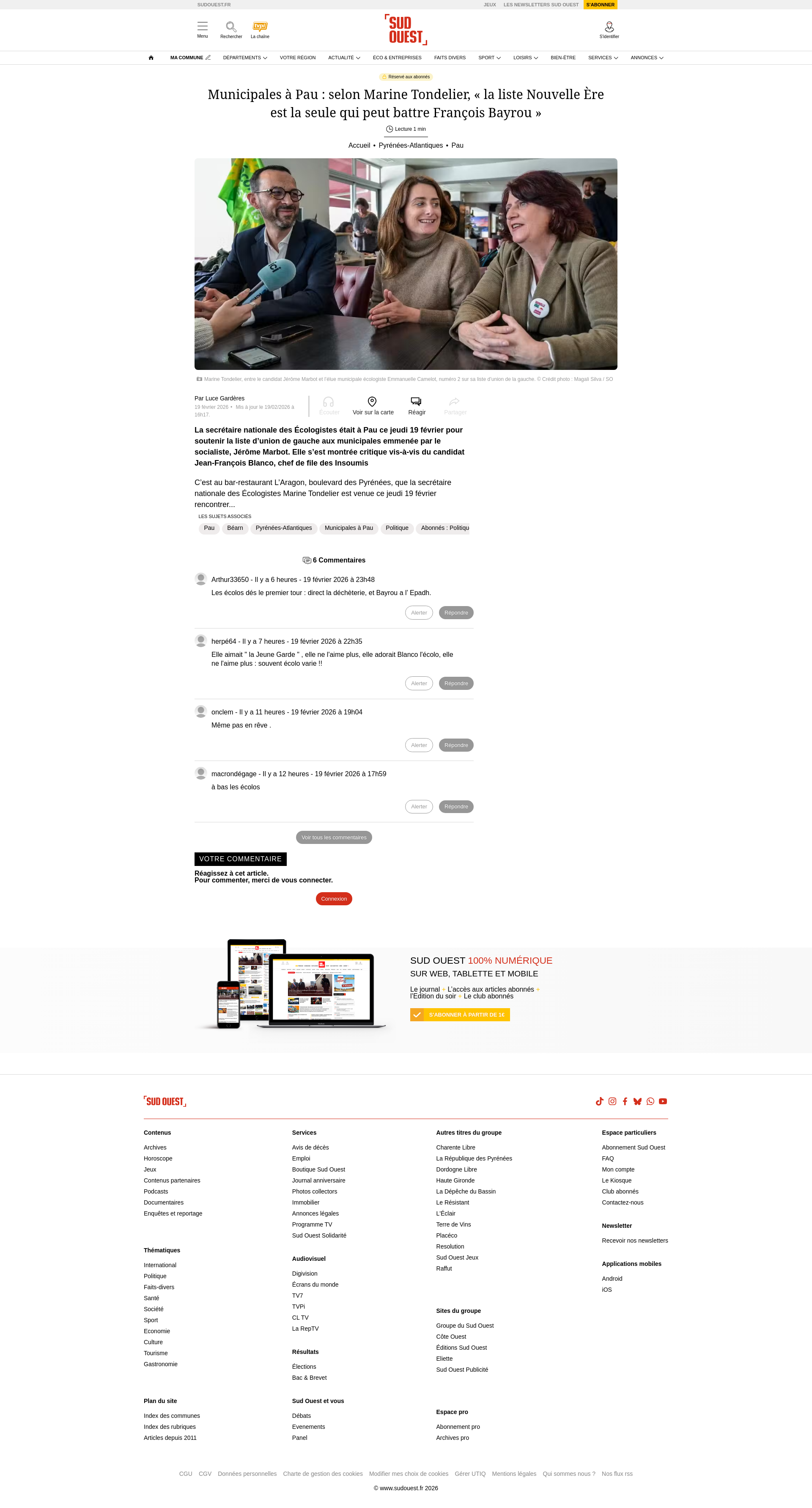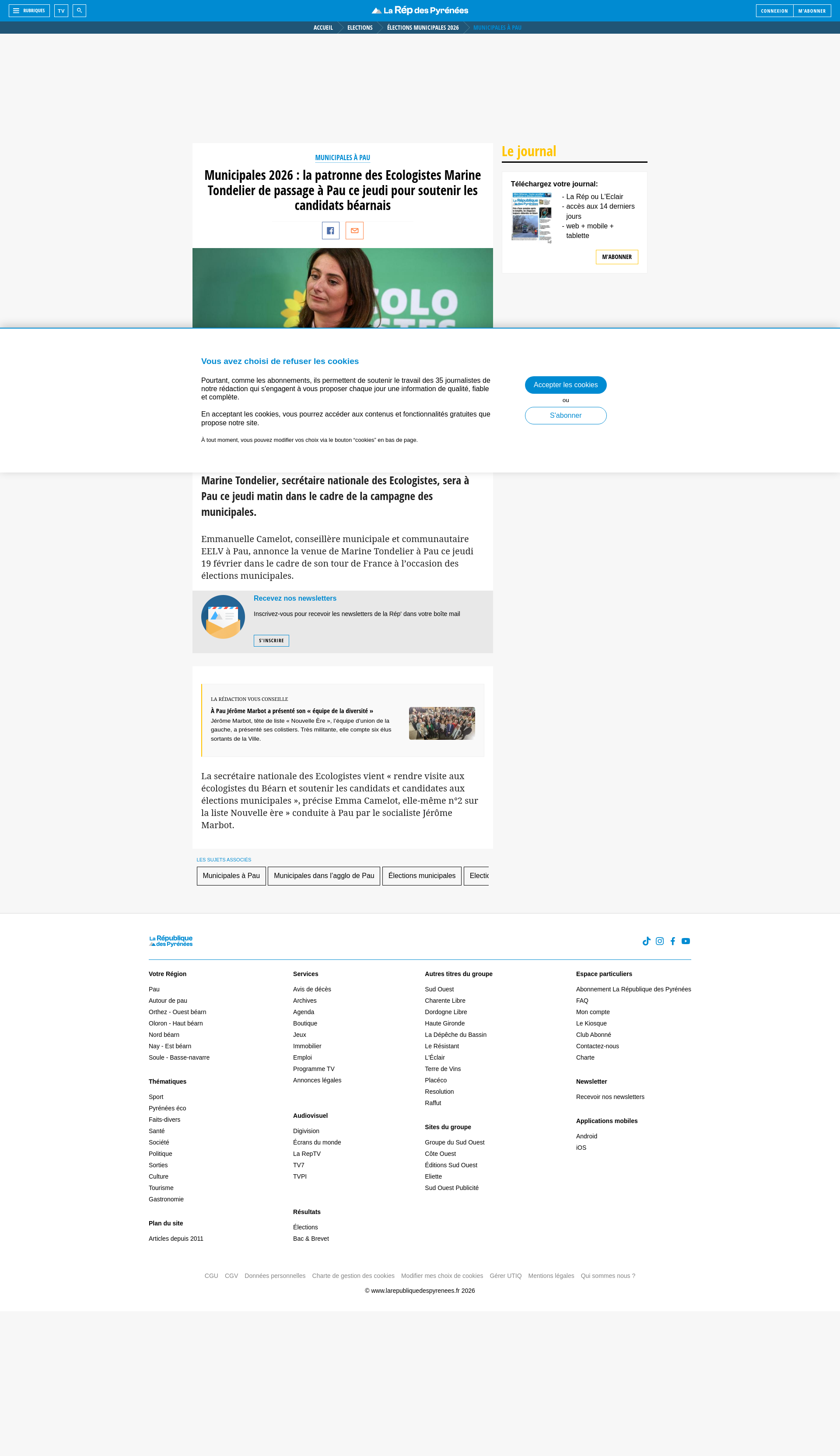 Municipales 2026 : la patronne des Ecologistes Marine Tondelier de passage à Pau ce jeudi pour soutenir les candidats béarnaisMarine Tondelier, secrétaire nationale des Ecologistes, sera à Pau ce jeudi matin dans le cadre de la campagne des municipales.PNGPDF