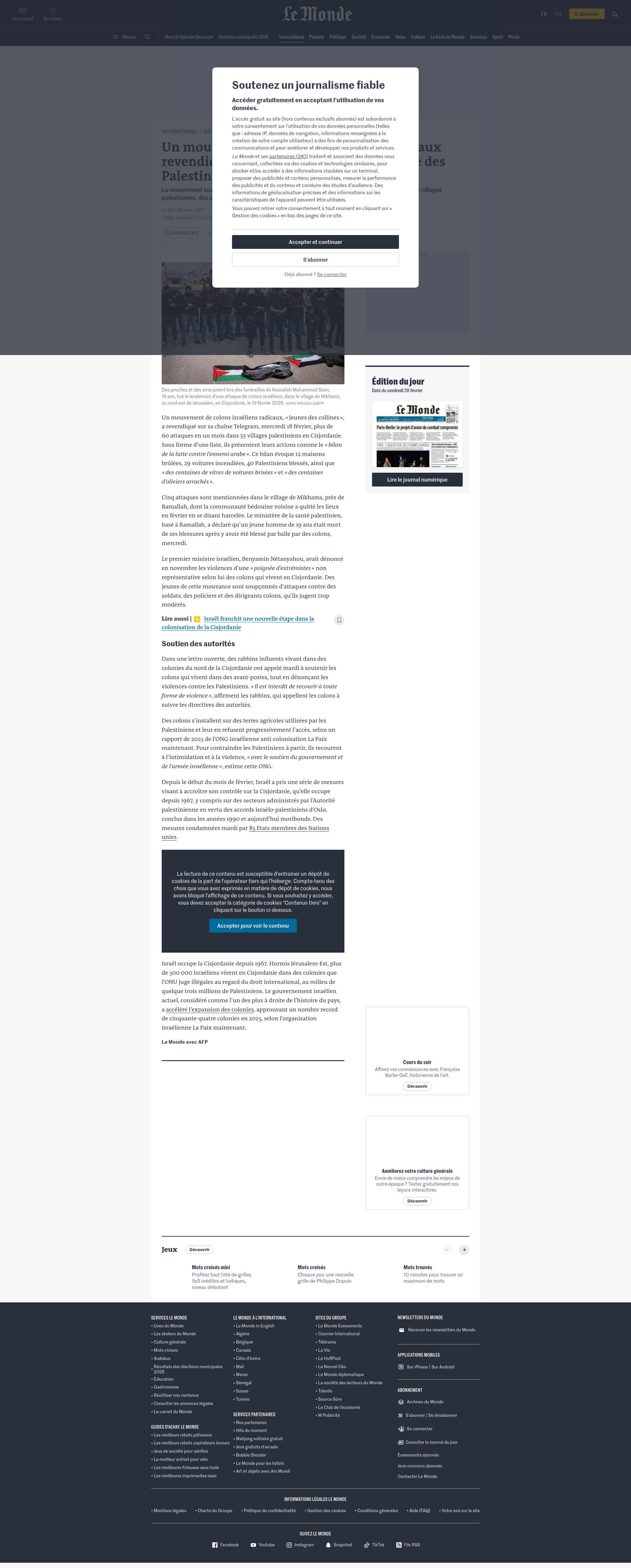 Un mouvement de colons israéliens radicaux revendique des dizaines d’attaques contre des Palestiniens en CisjordanieLe mouvement Jeunes des collines a publié une liste de plus de 60 attaques en un mois dans 33 villages palestiniens, des actions présentées comme le « bilan de la lutte contre l’ennemi arabe ».PNGPDF