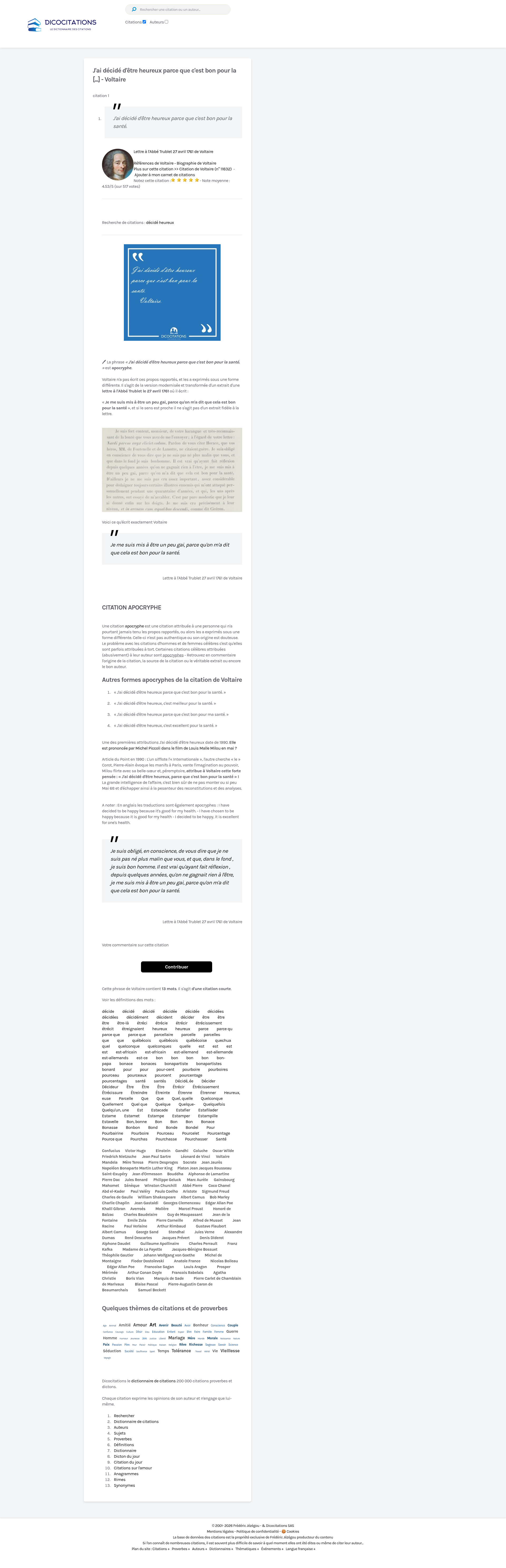 J'ai décidé d'être heureux parce que c'est bon pour la [...] - VoltaireJ'ai décidé d'être heureux parce que c'est bon pour la [...] - VoltairePNGPDF