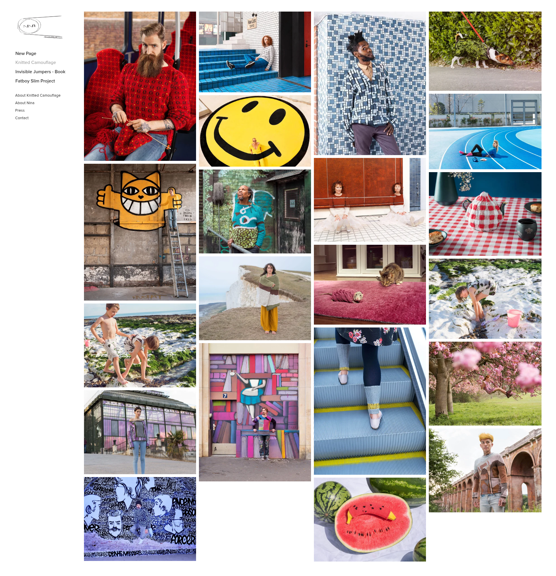 Nina Dodd KnitsNina Dodd is a prolific and creative knitter. She has recently collaborated with photographer, Joseph Ford, to create intriguing camouflage knitting photography. New book out now, Invisible Jumpers.PNGPDF