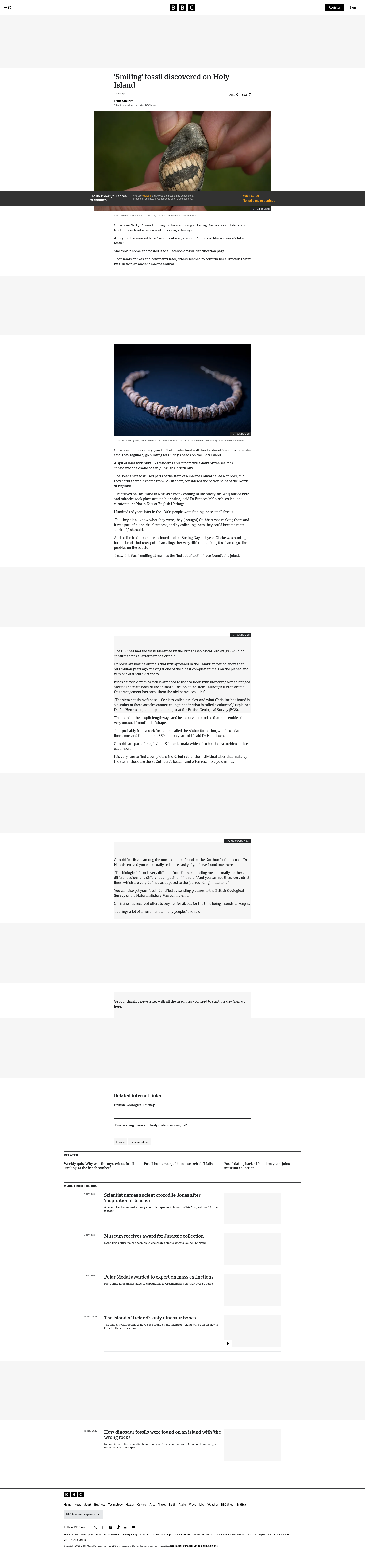 'Smiling' fossil discovered in NorthumberlandThe unusual looking fossil is estimated to be a few hundred million years old dating to the Carboniferous period.PNGPDF
