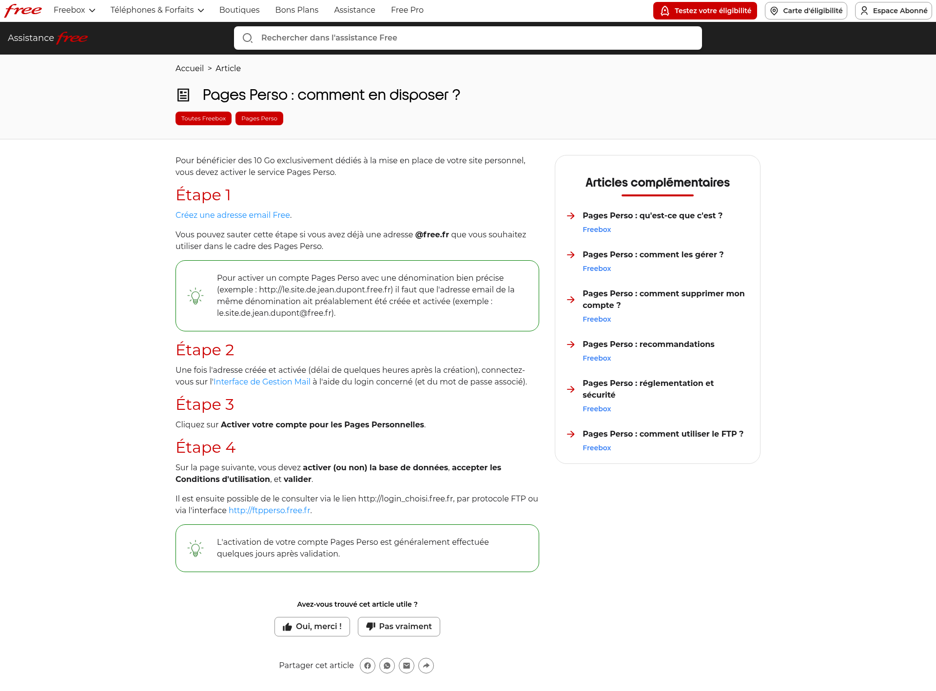 Assistance Free - Pages Perso : comment en disposer ?Pages Perso : comment en disposer ?PNGPDF